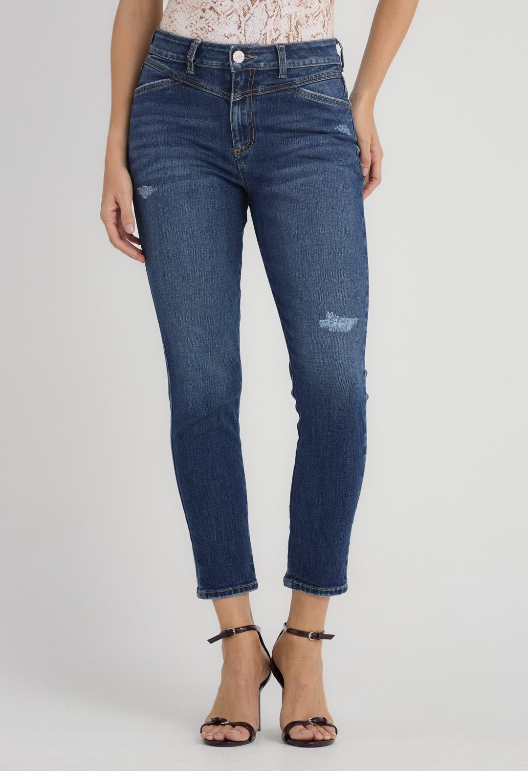 Jean vaquero medio oscuro con corte en delantero para mujer