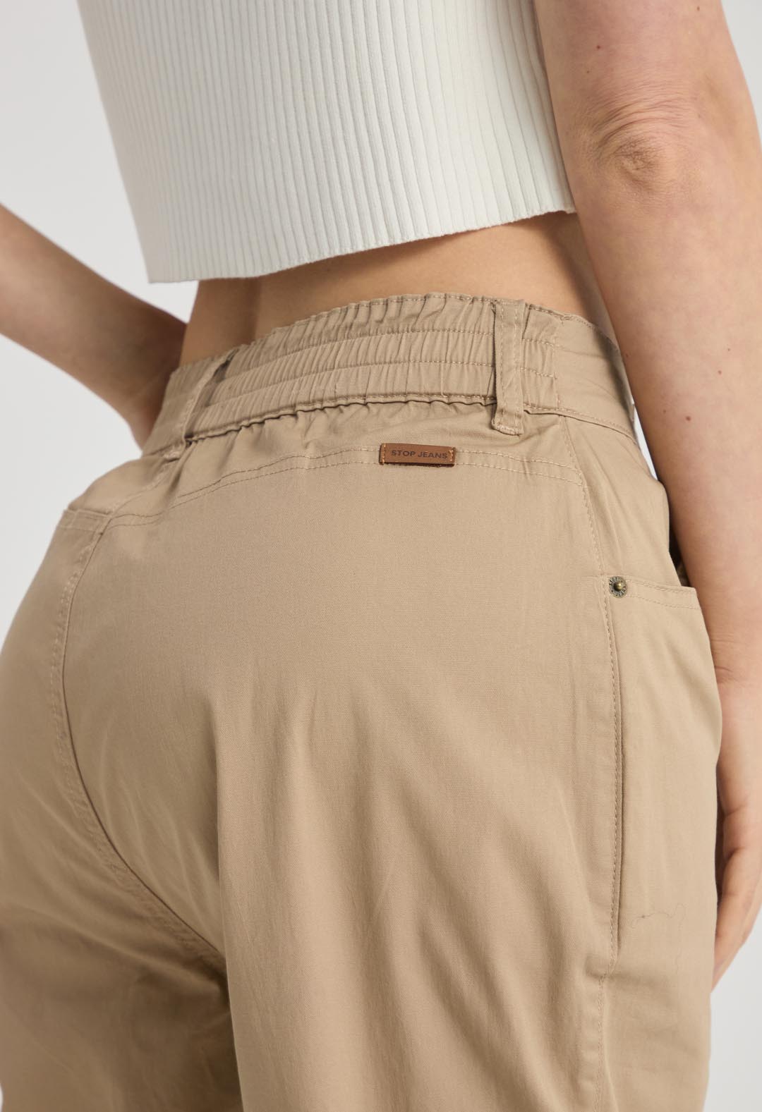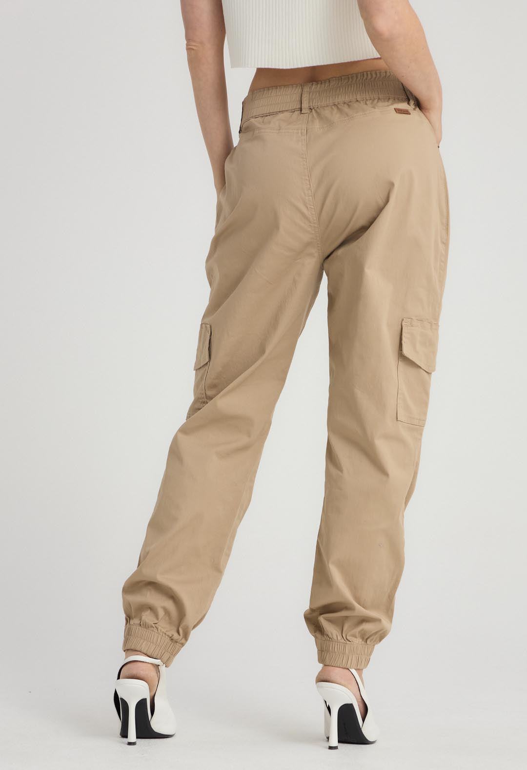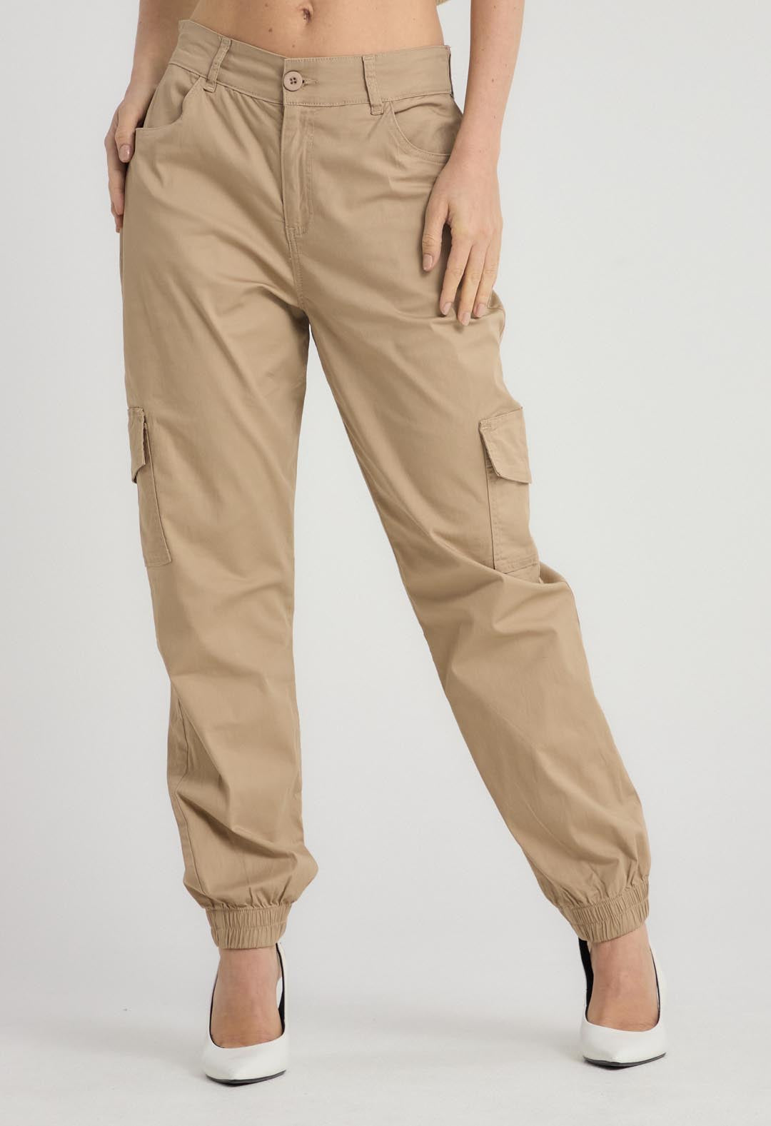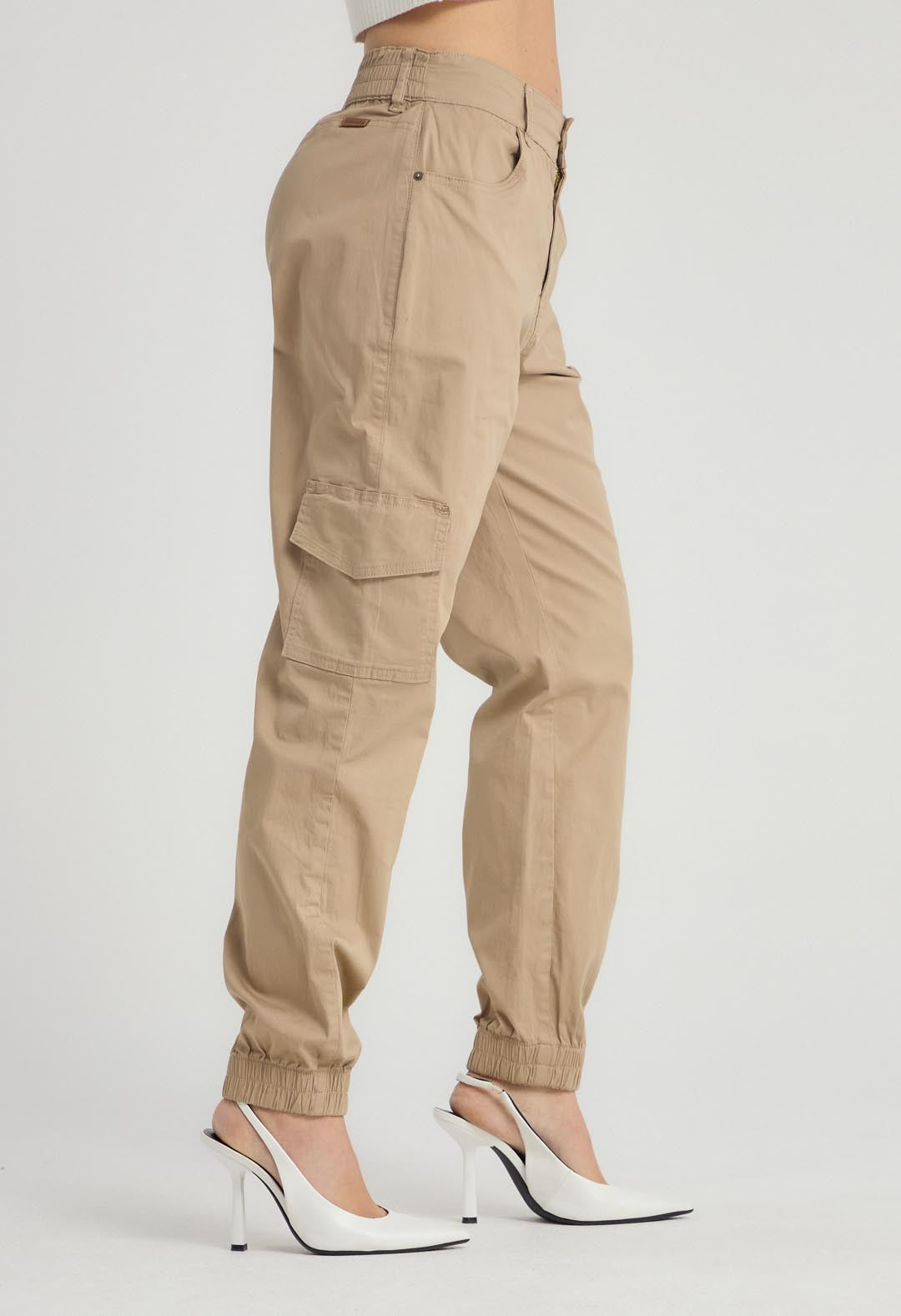 Jogger tiro alto, color arena, bolsillos en costados y fondo entero para mujer.