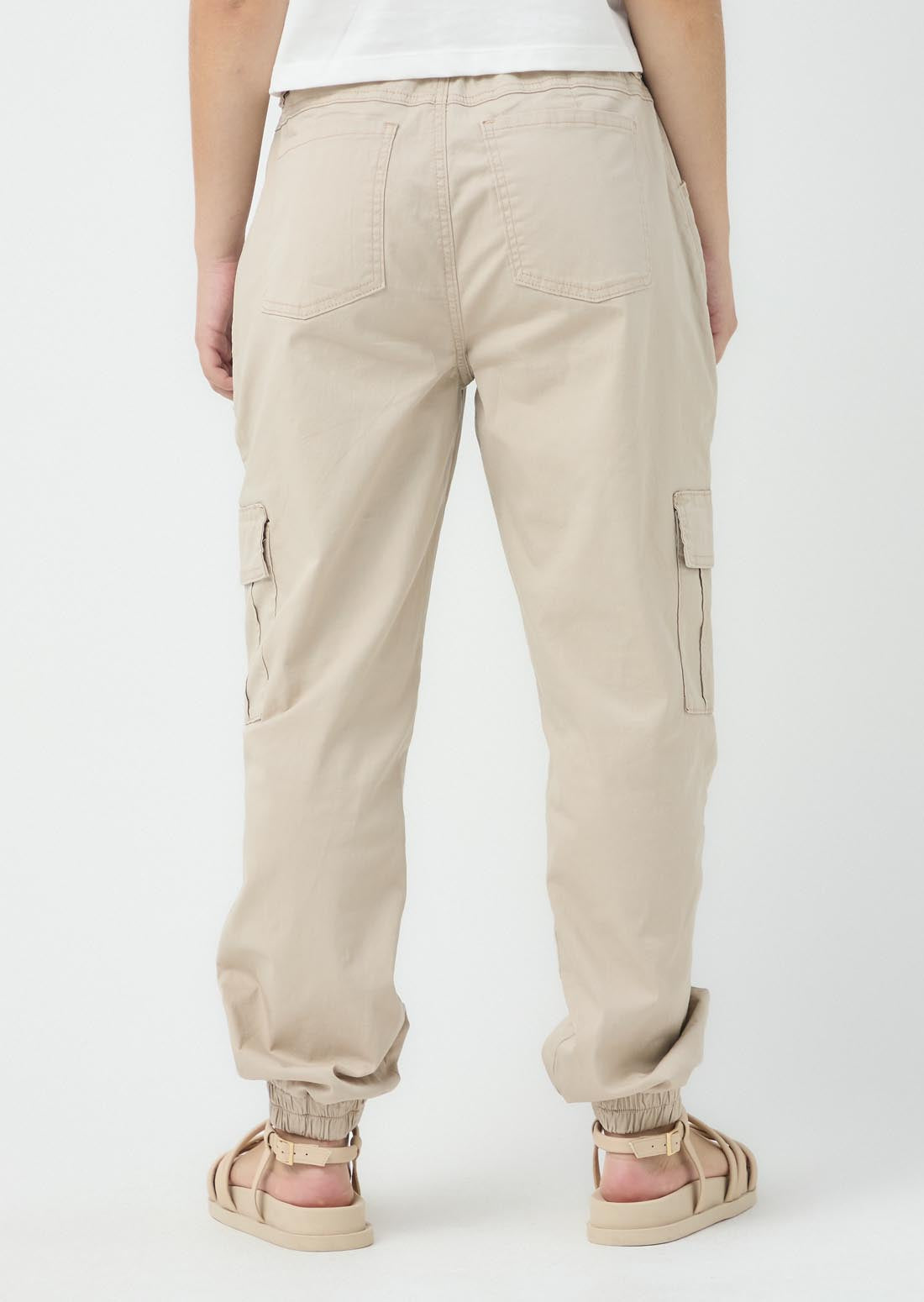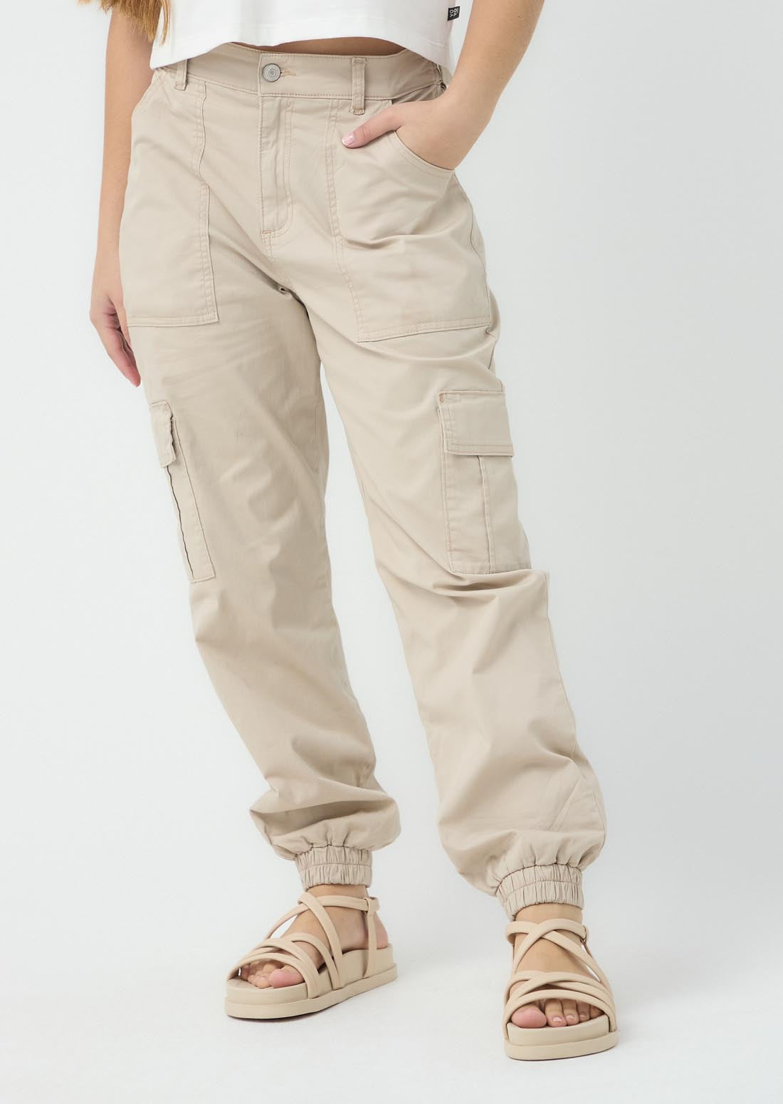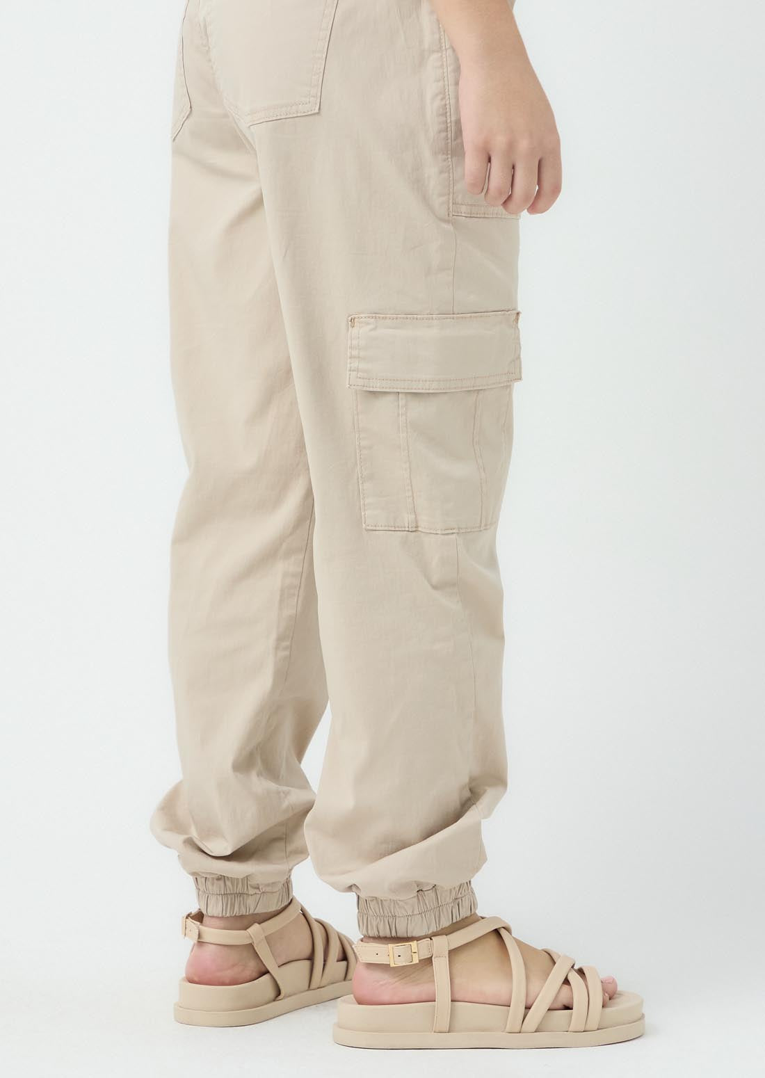 Jogger tiro alto, color arena2, bolsillos en costado, ajustable en cintura y bota para adolescentes.