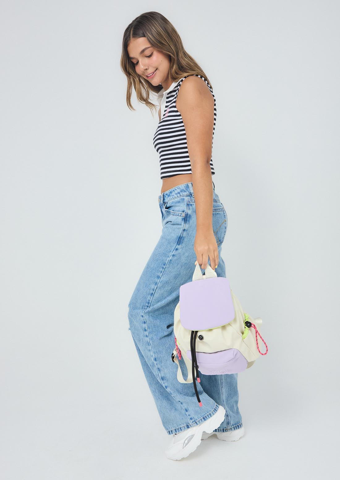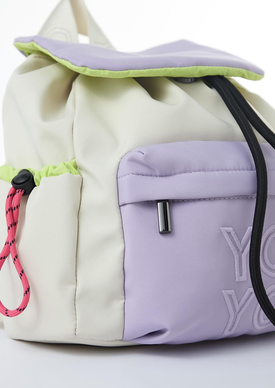 Morral color lila, detalles en contraste y bordado frontal.