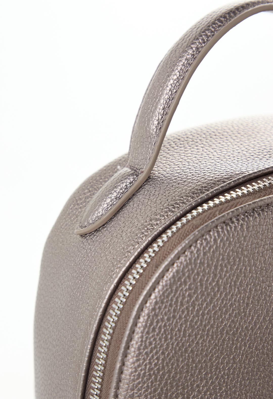 Morral con cierres metálicos en frente, color ocre y fondo entero.