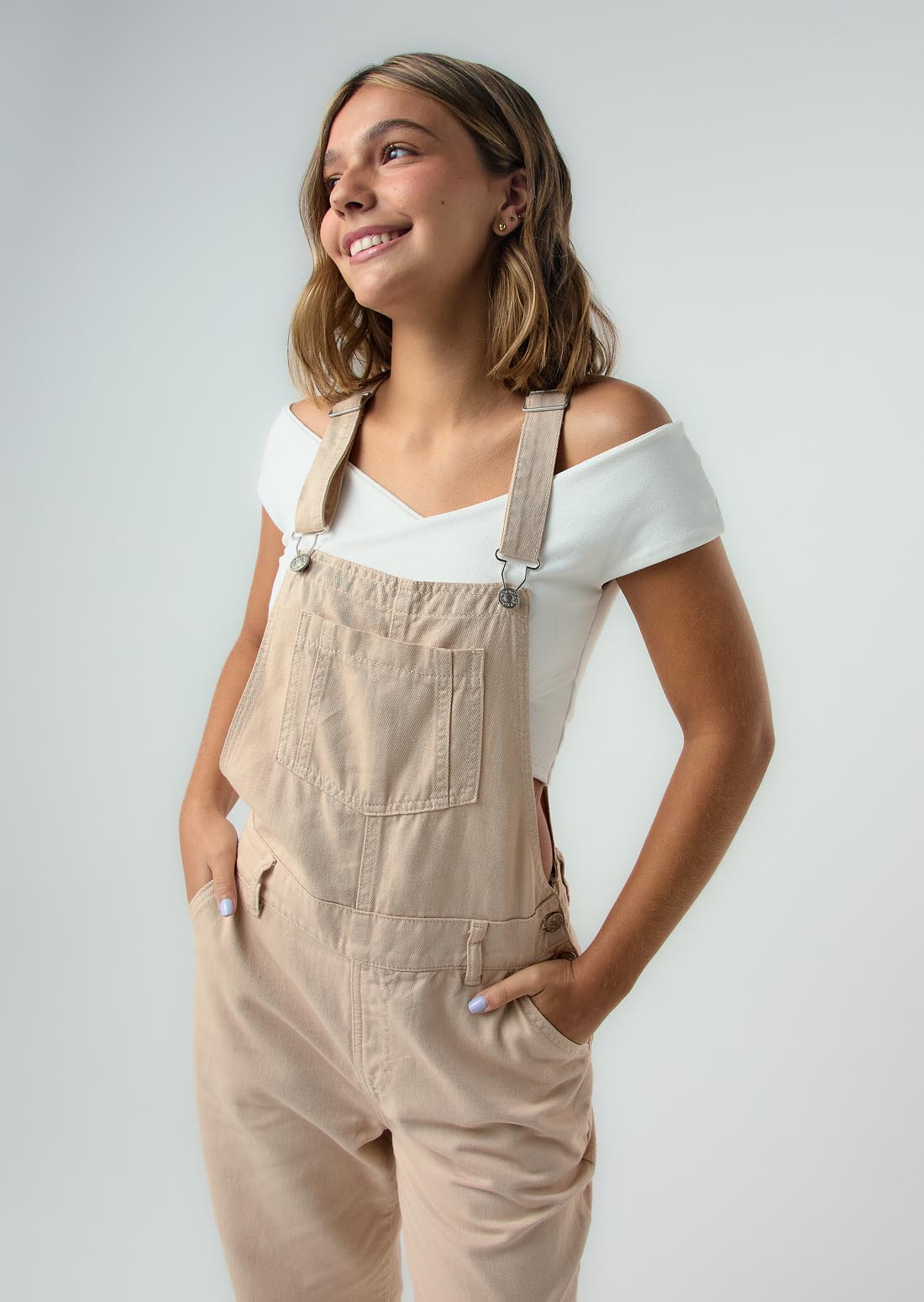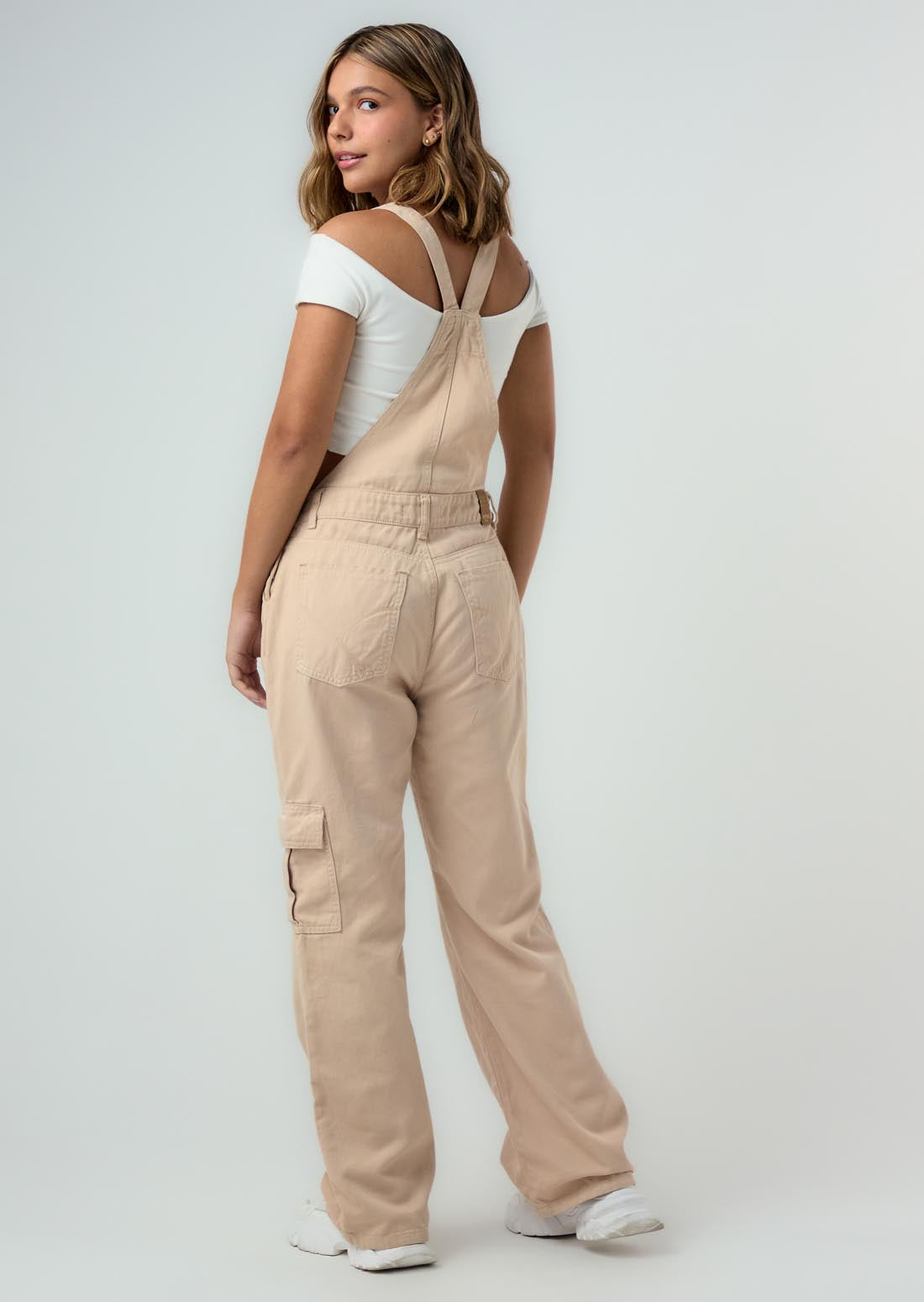 Overall largo, color arena y fondo entero para jóvenes.