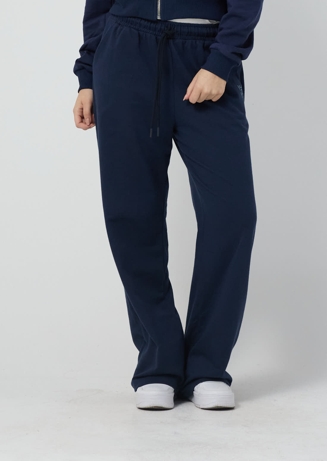 Pantalón tiro alto, color azul navy, fondo entero y bota recta para jóvenes.