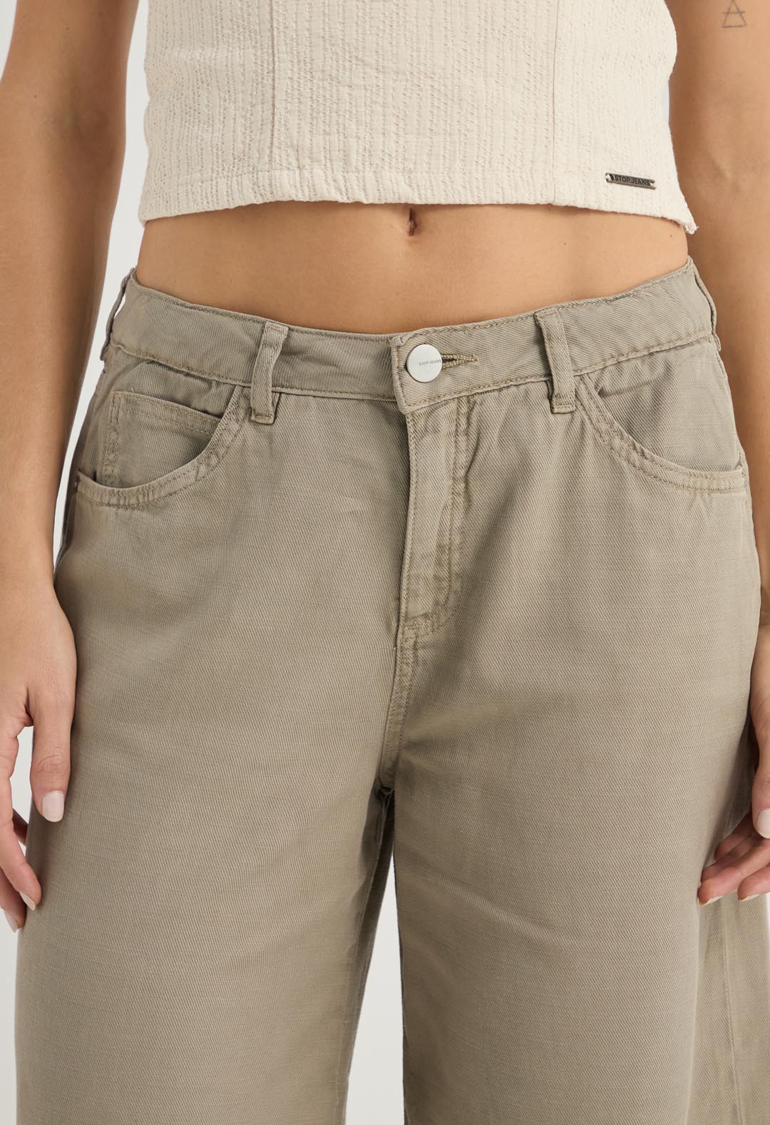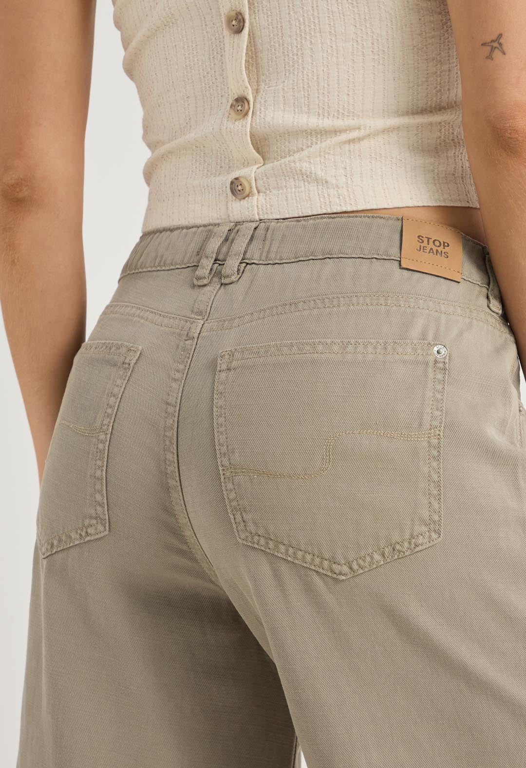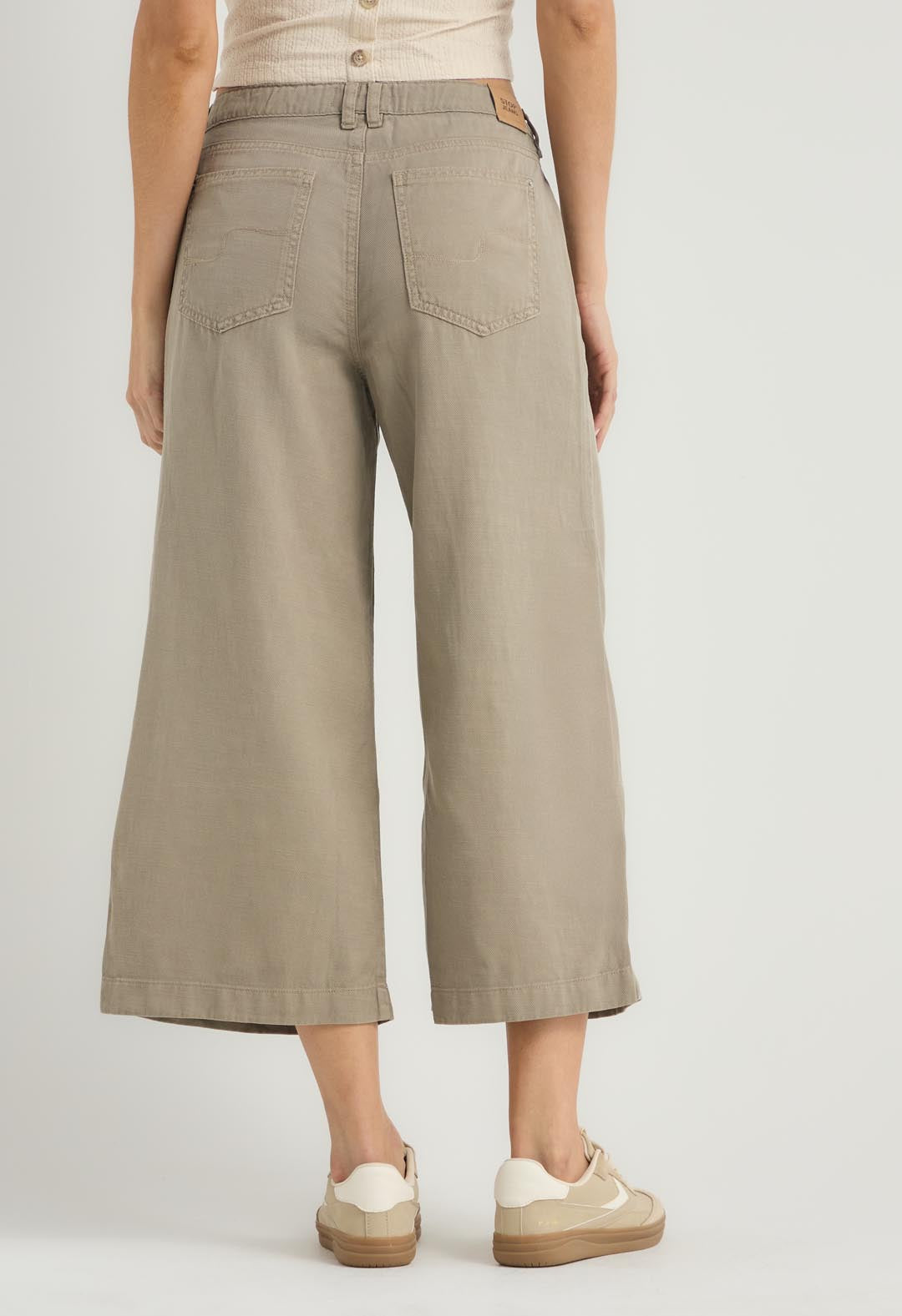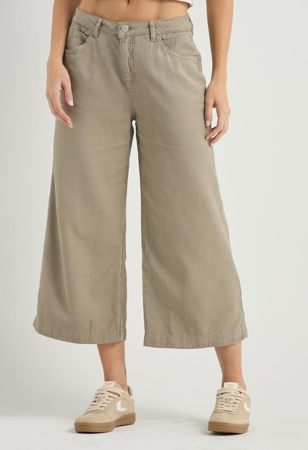 Pantalón culotte, tiro alto, color taupe, con bolsillos y fondo entero para mujer.