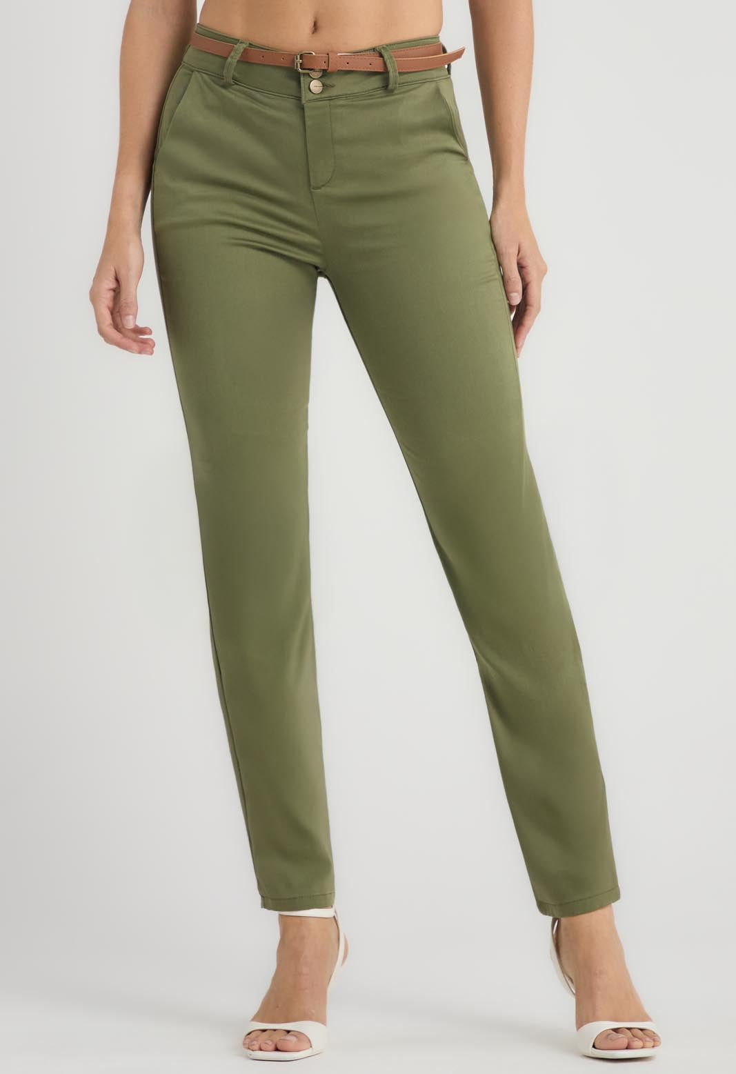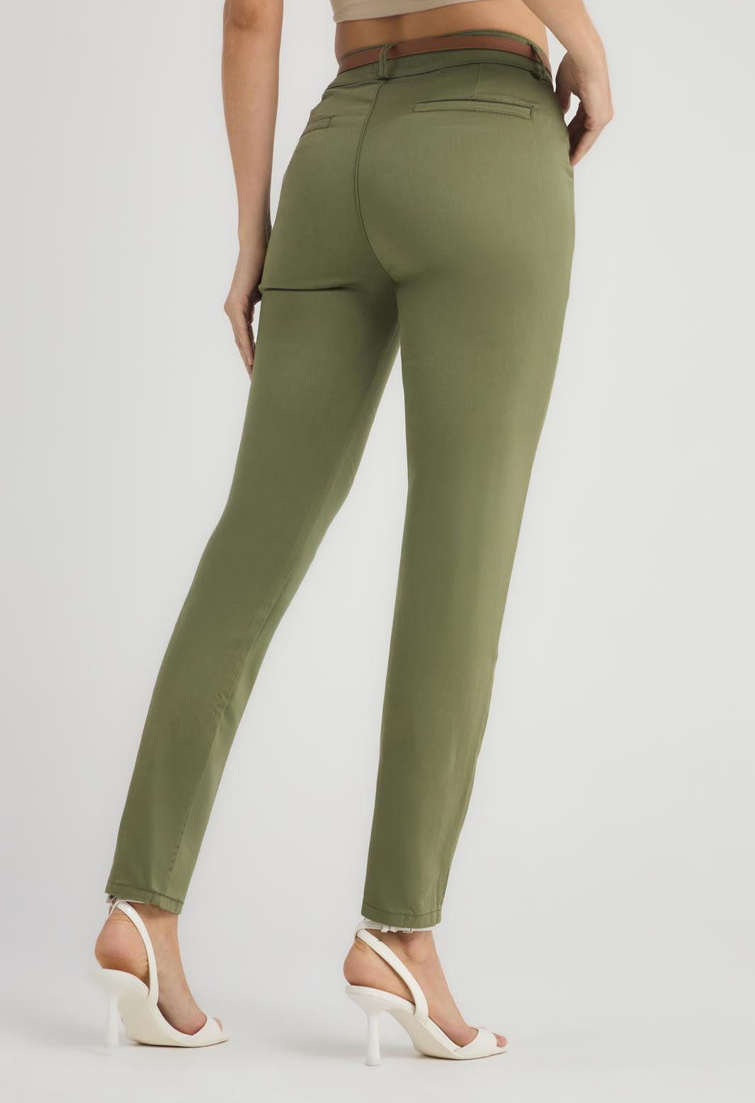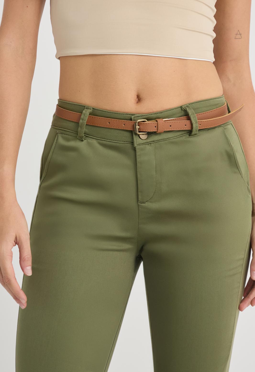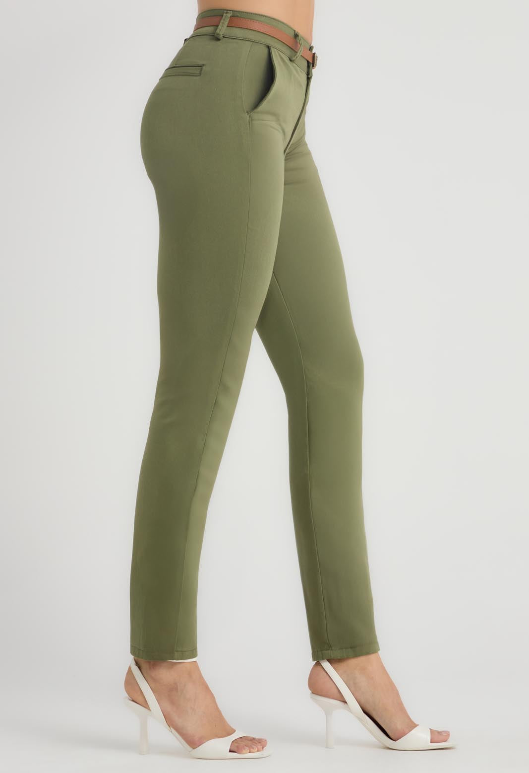 Pantalón ejecutivo verde militar fondo entero para mujeres