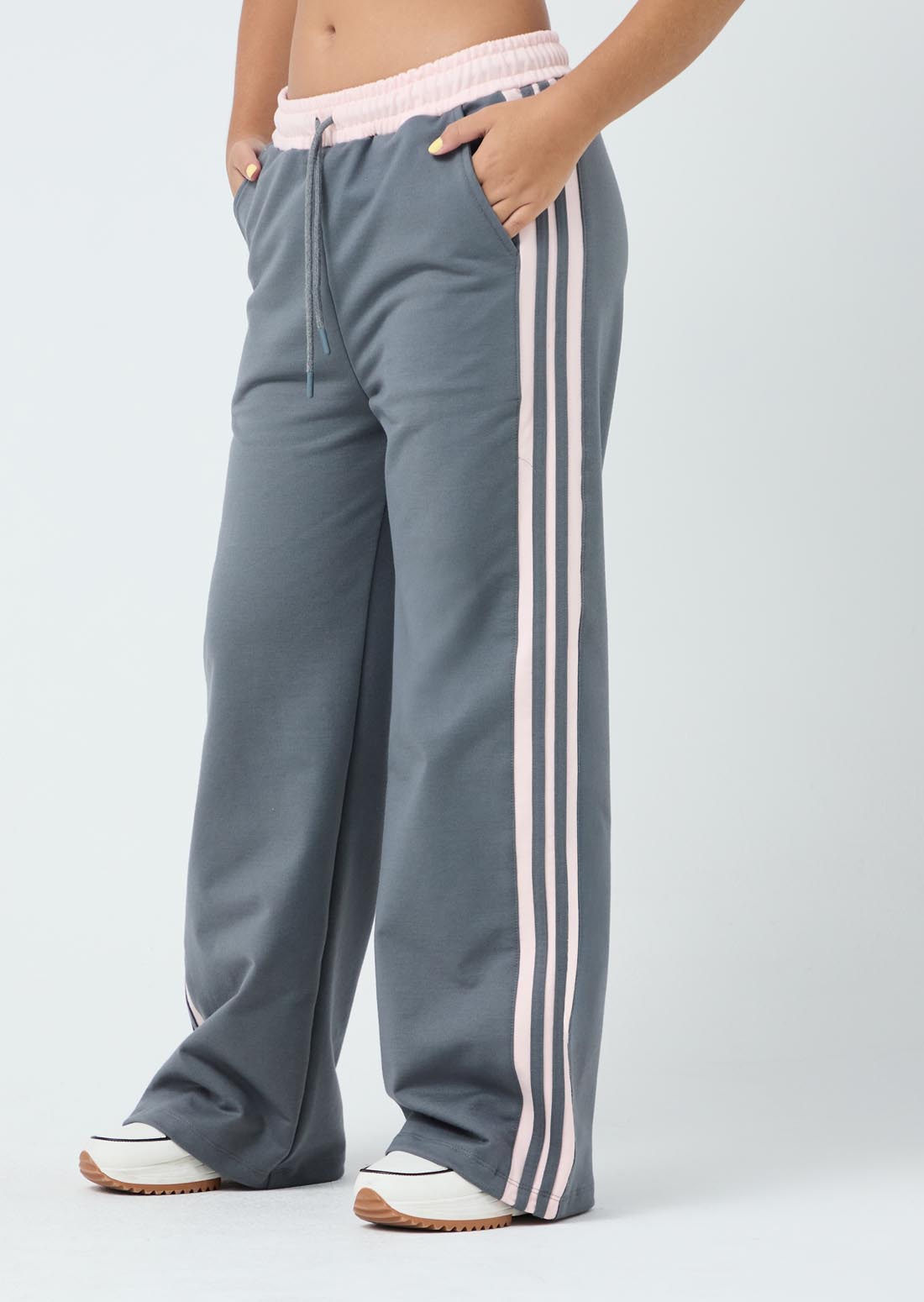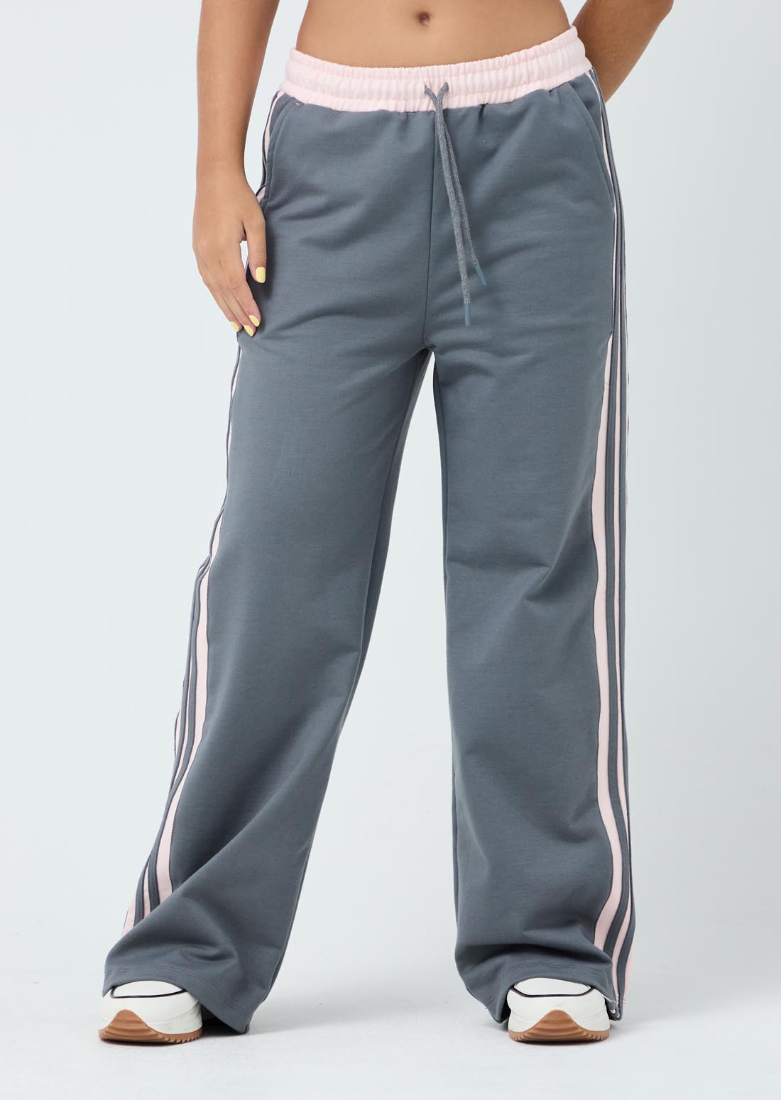Pantalón tiro alto, color gris oscuro, piezas en contraste de color y cordón ajustable para jóvenes.
