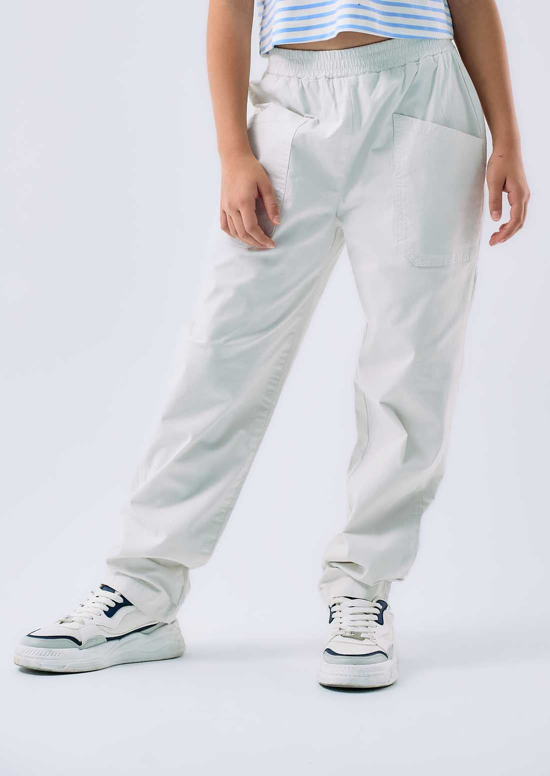 Pantalón marfil con bolsillos tipo parche para niñas
