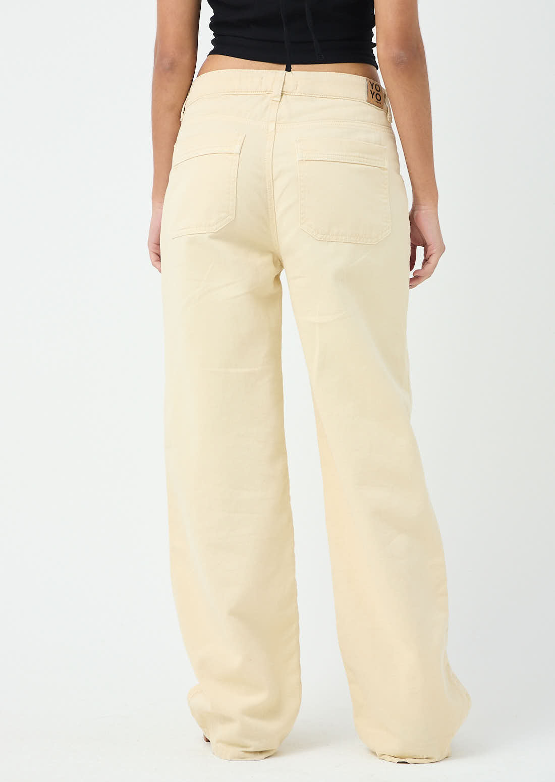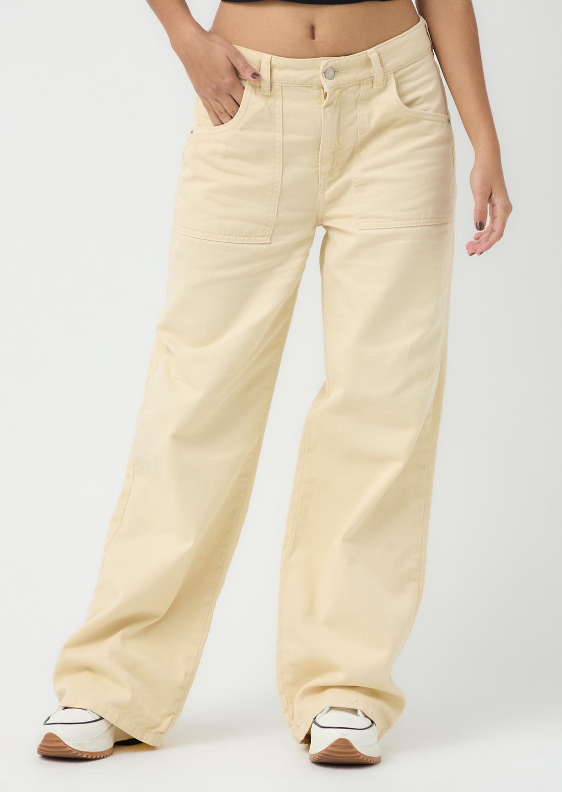 Jean retromom, tiro alto, color kaky y fondo entero para jóvenes.