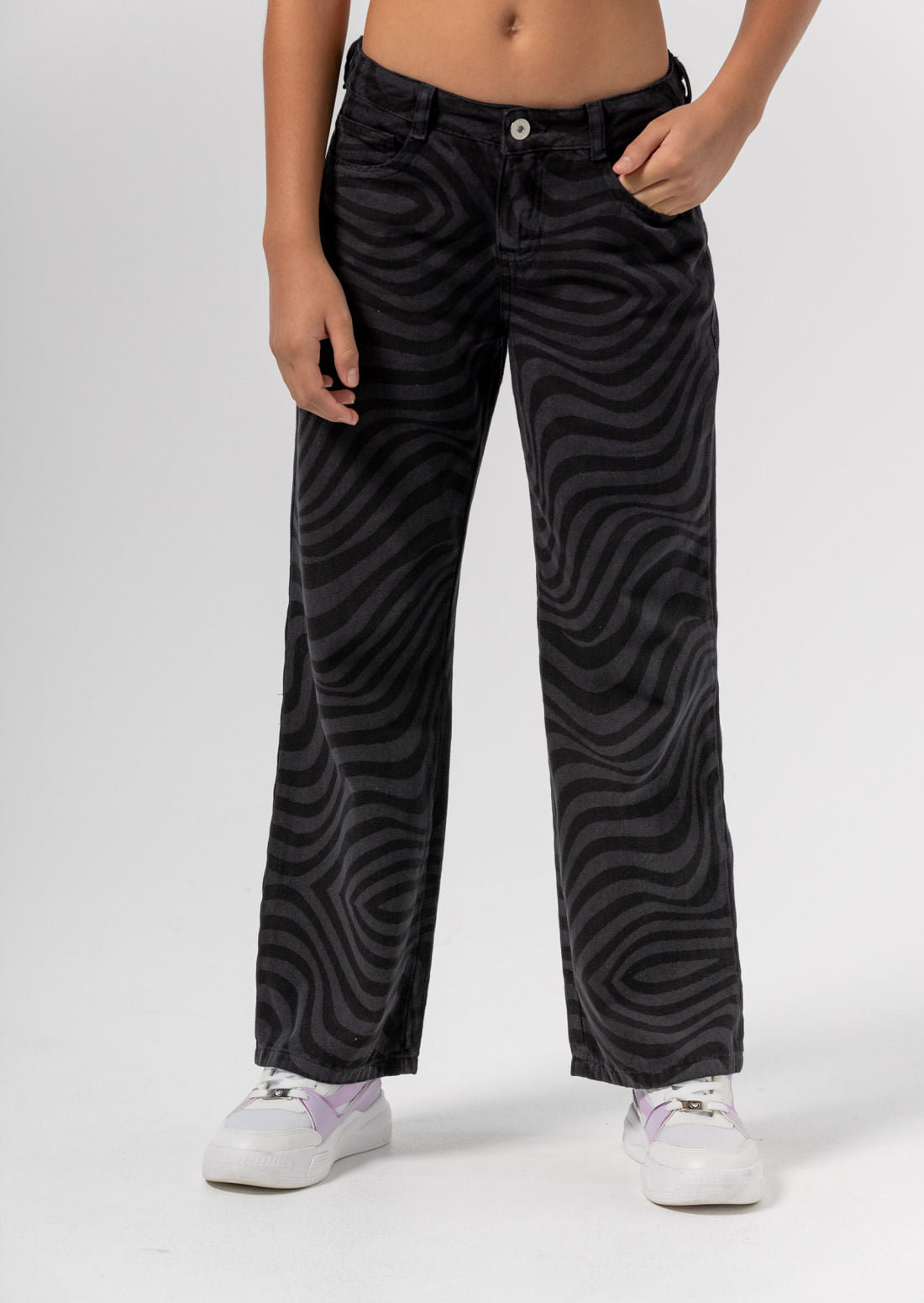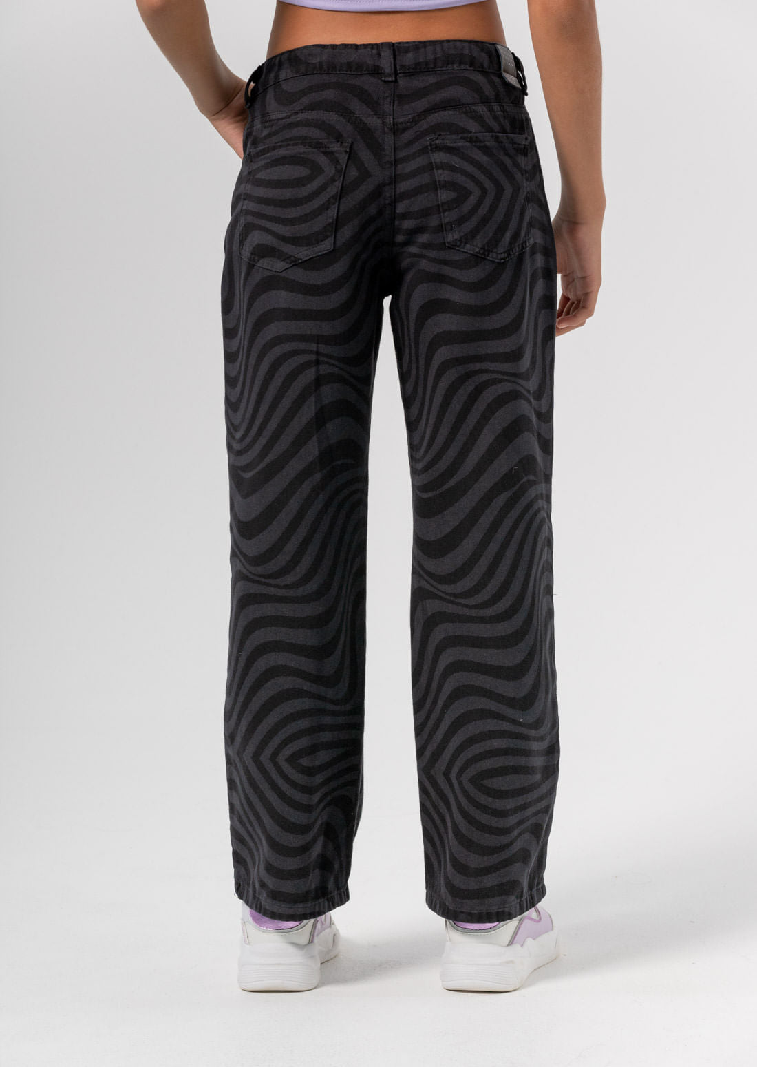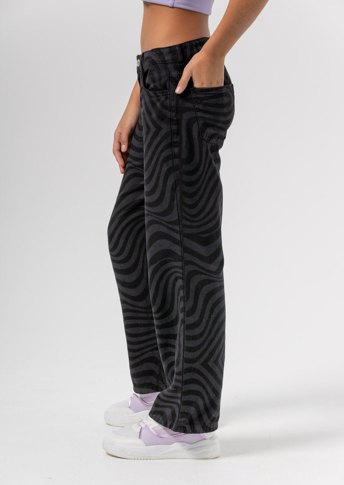 Jean retromom, tiro alto, color negro, elástico ajustable en cintura, bolsillos y teñido para niñas.