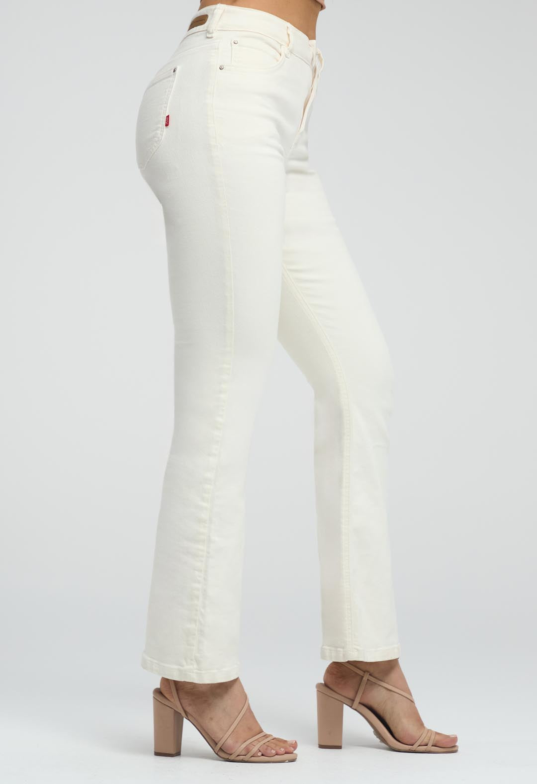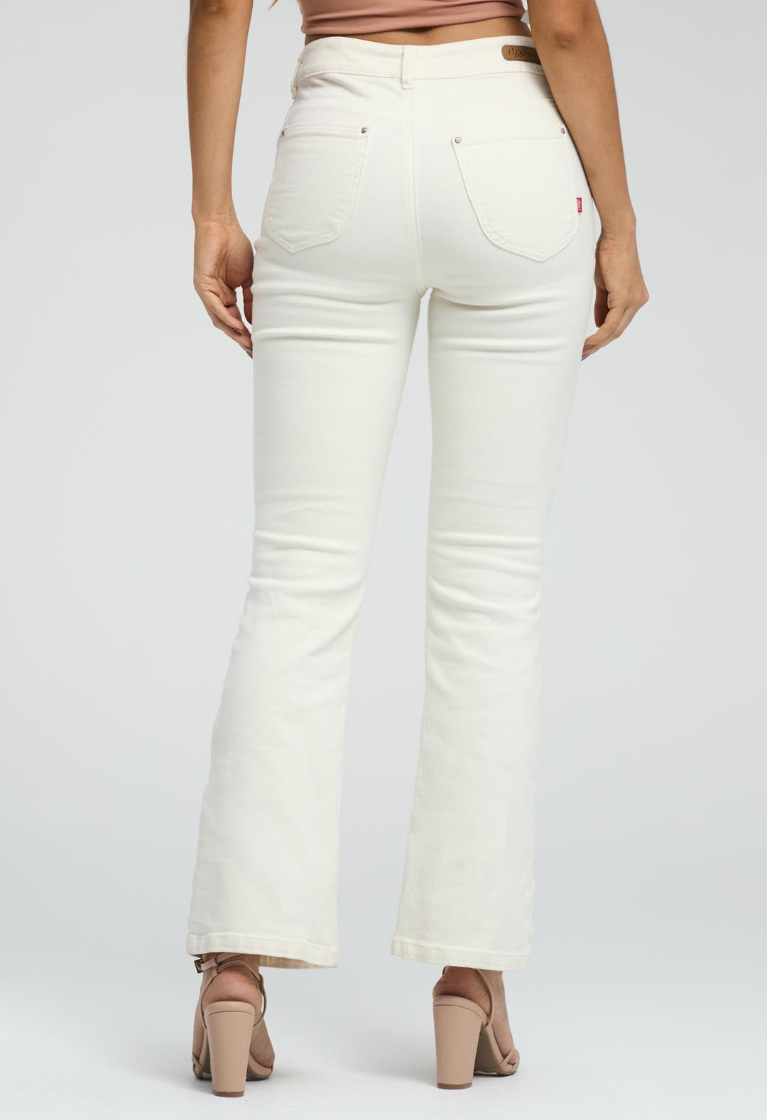 Inicio Pantalón tejano marfil bota amplia para mujeres