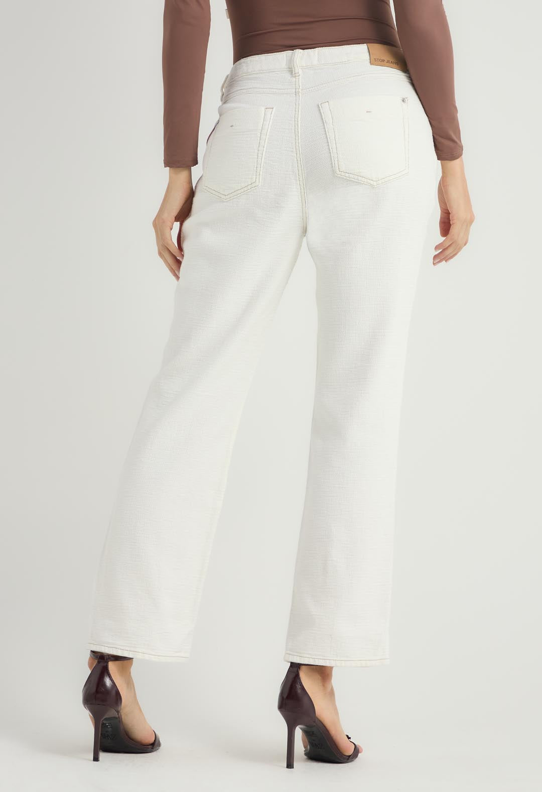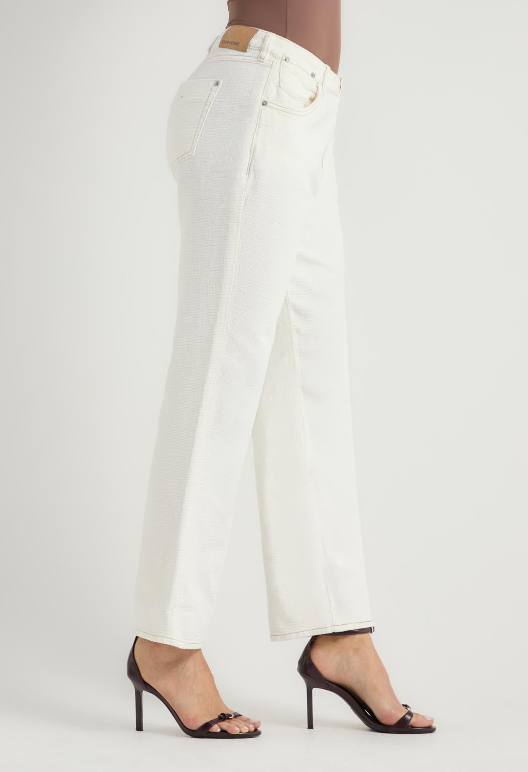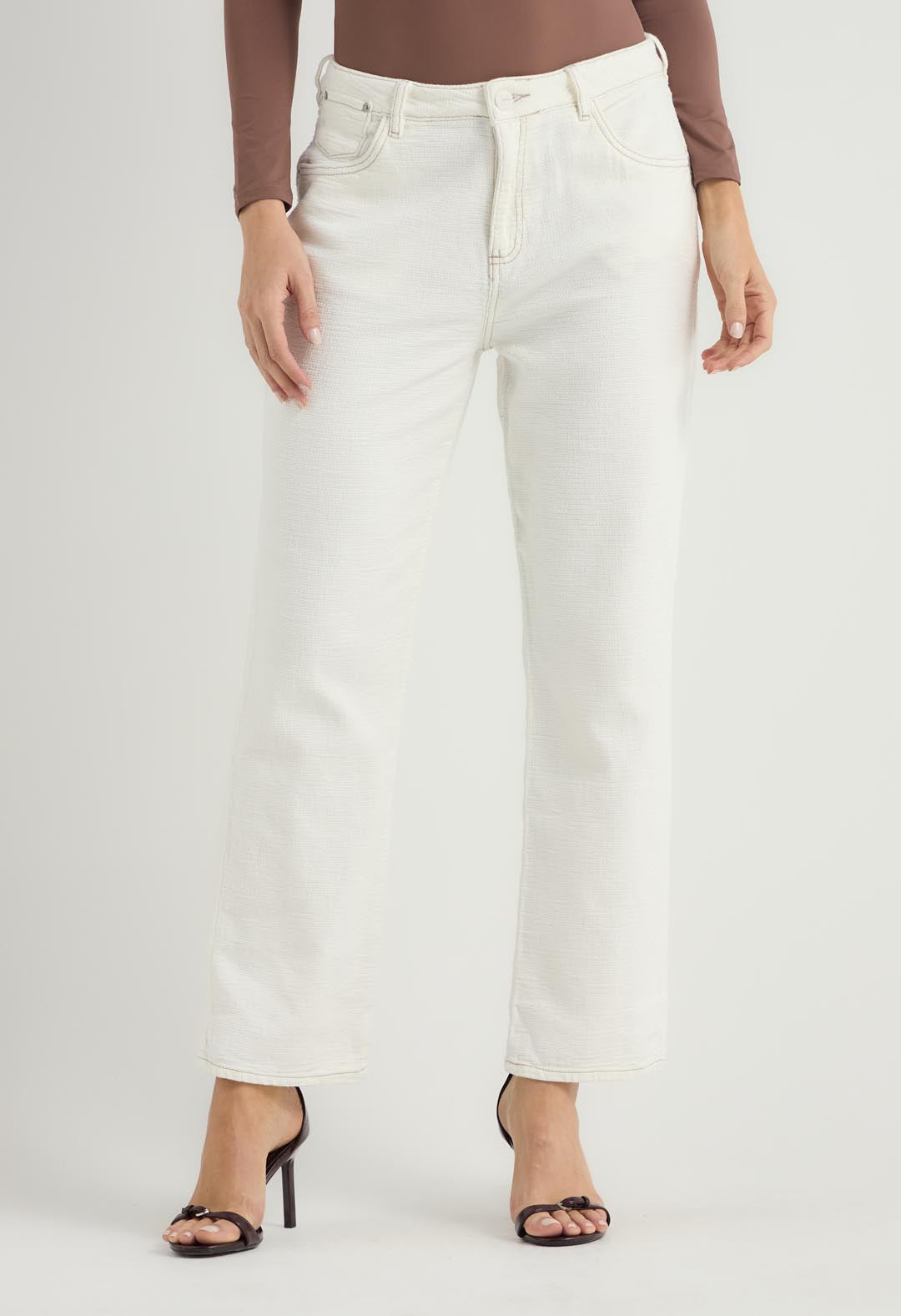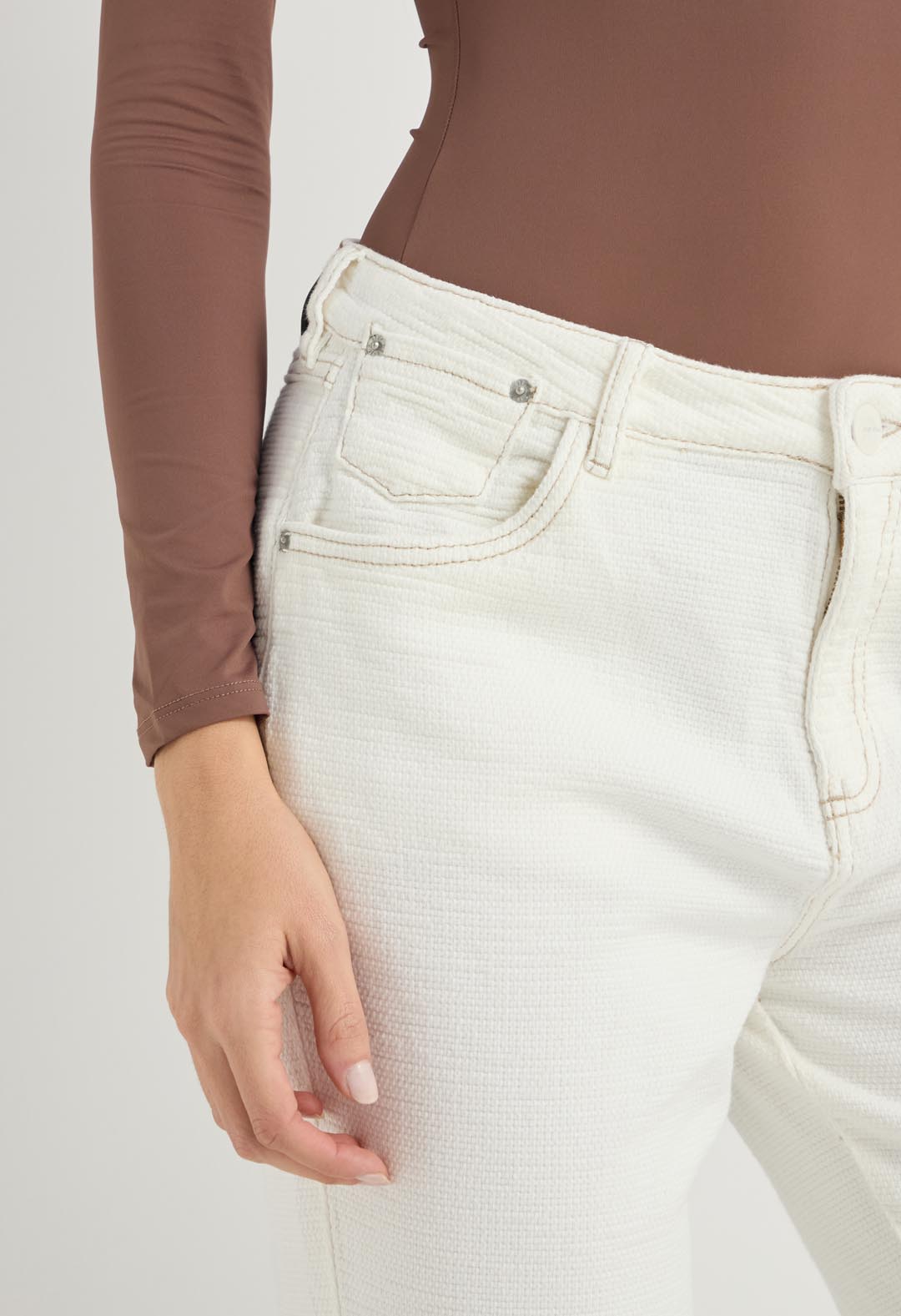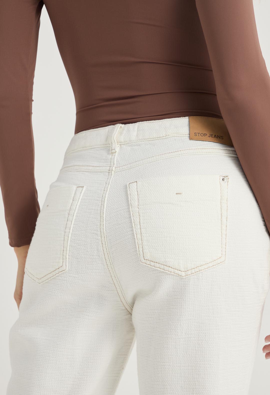 Pantalón vaquero marfil en tela texturizada para mujeres.