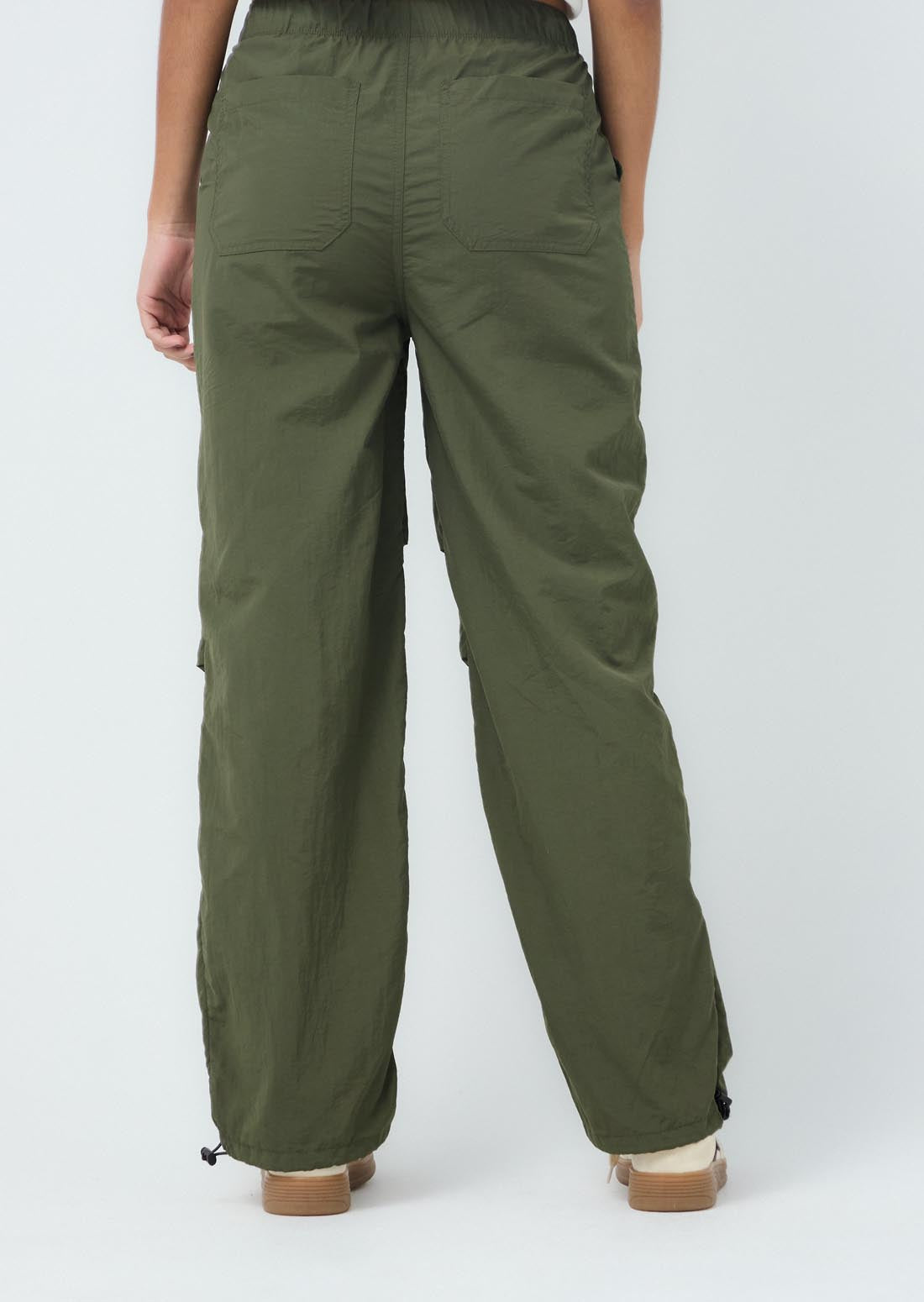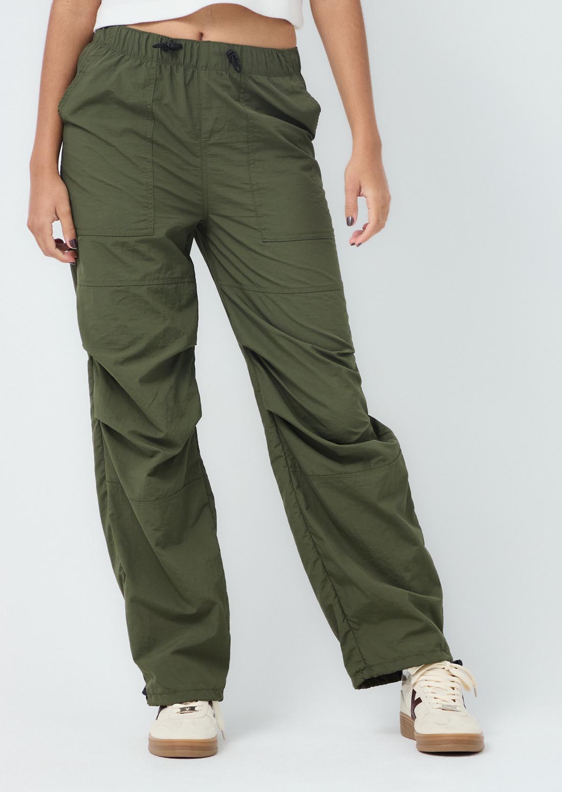 Parachute, tiro alto, color verde militar, fondo entero, tancas para ajustar en pretina y bota para jóvenes.