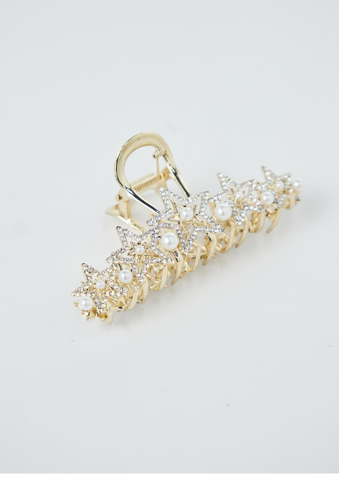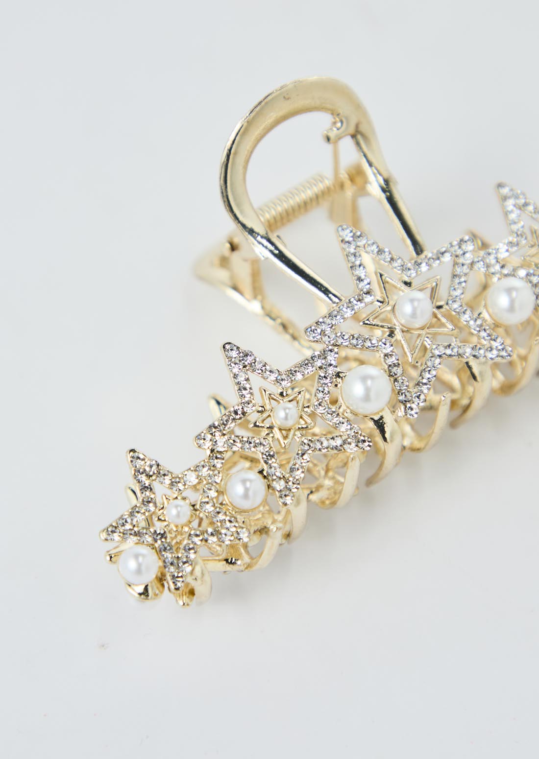 Pinza metálica, color plateado, con perlas y estrellas para el cabello