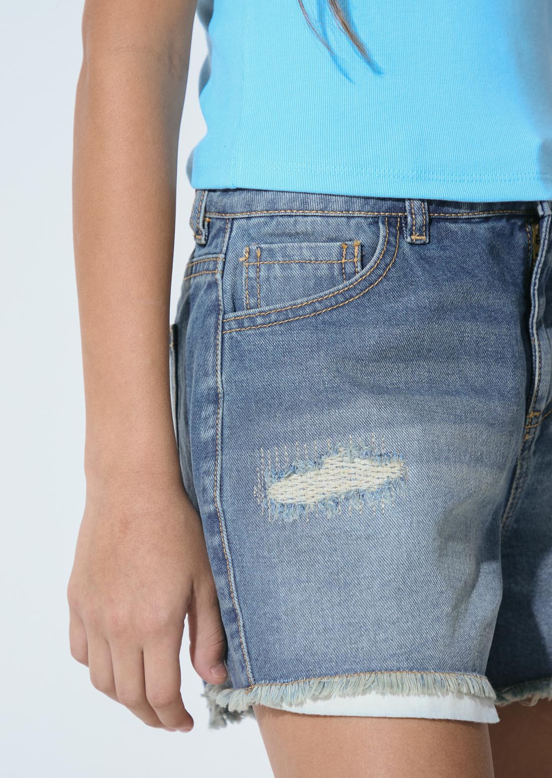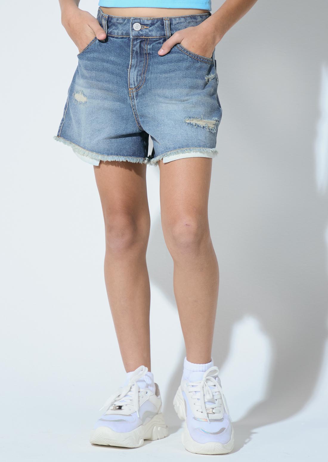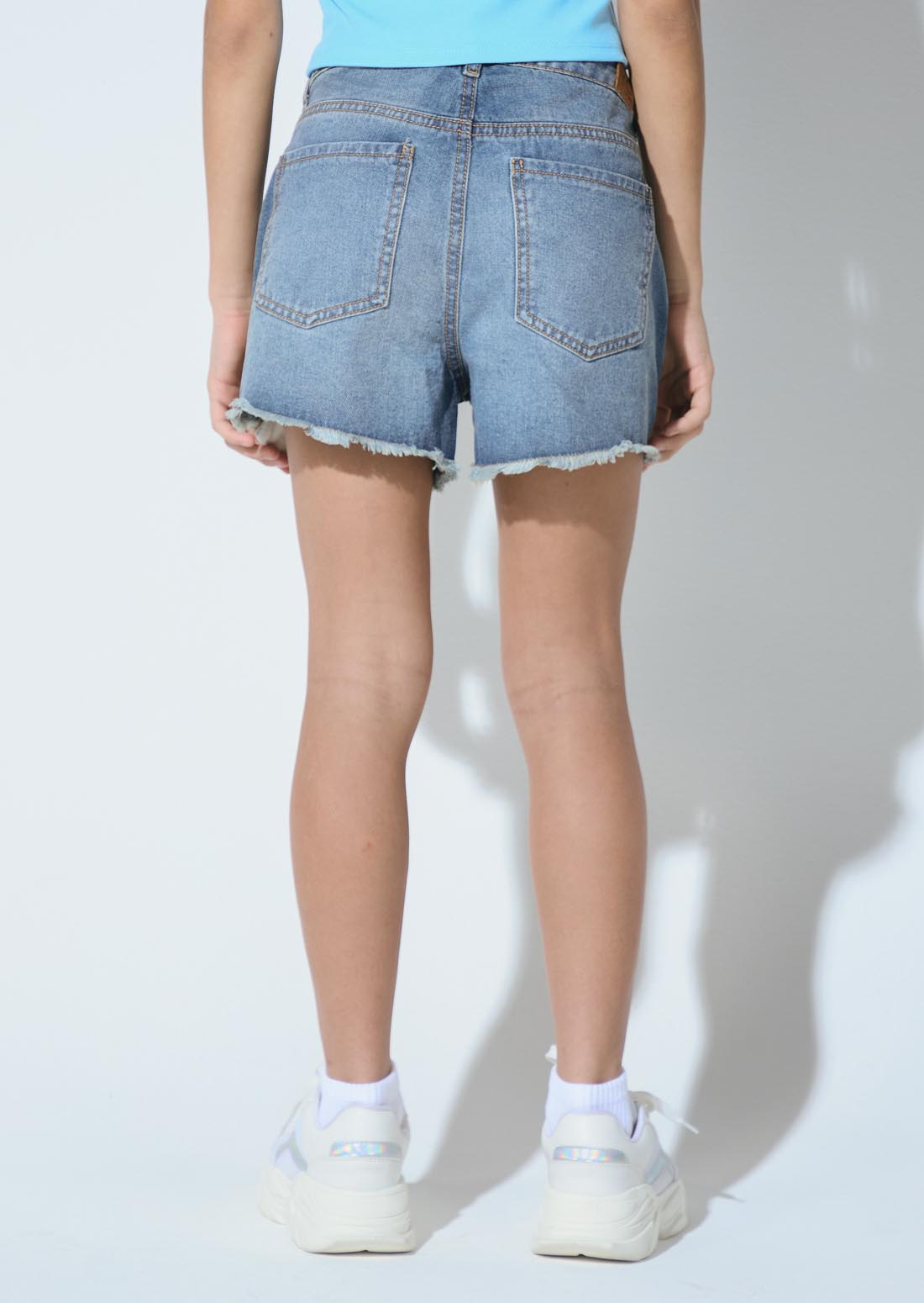 Short tiro alto, lavado claro y fondo entero para niñas.