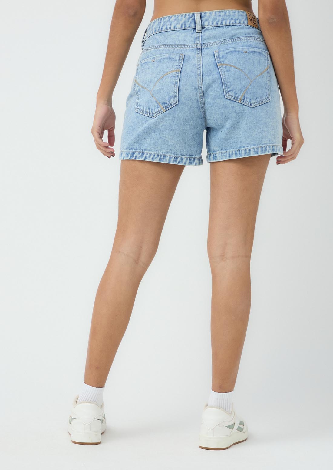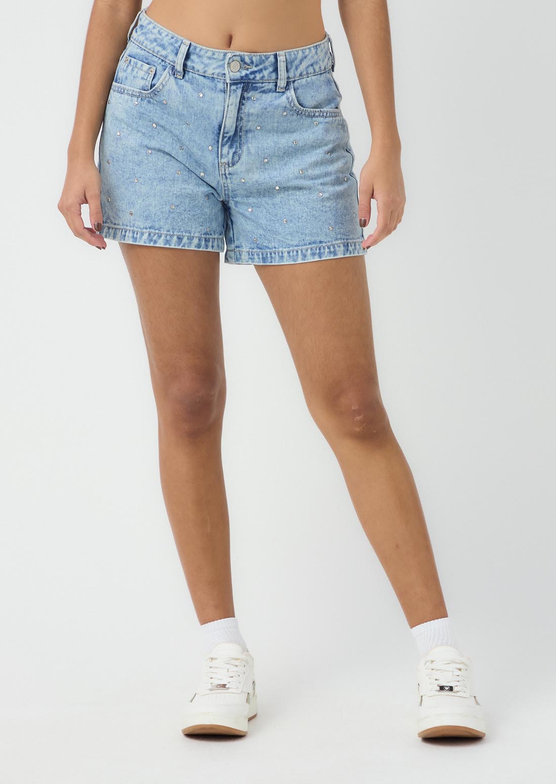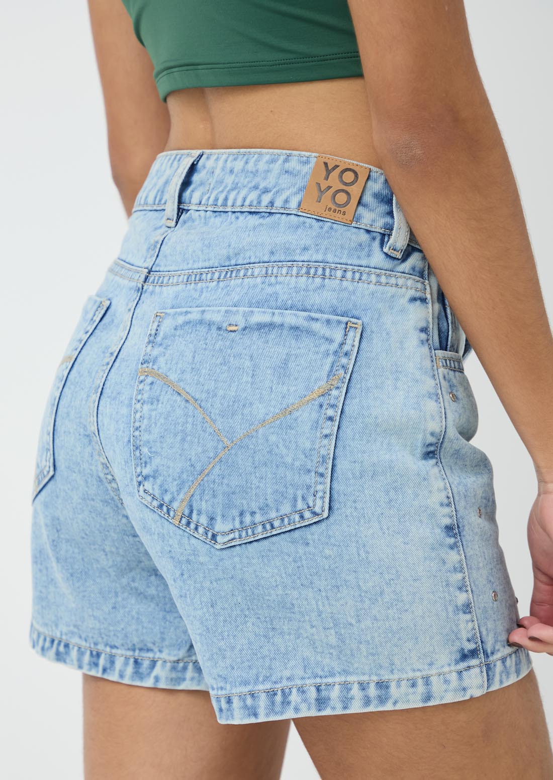 Short tiro alto, lavado claro y con apliques en frente para jóvenes.