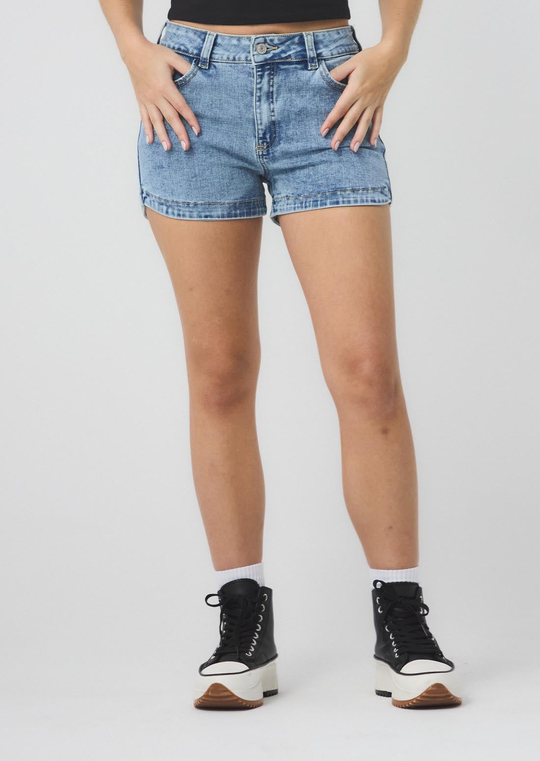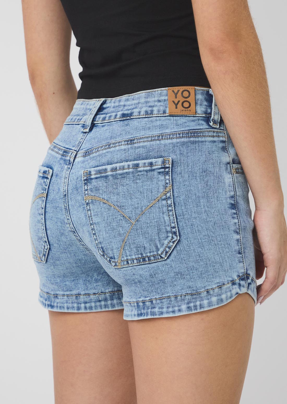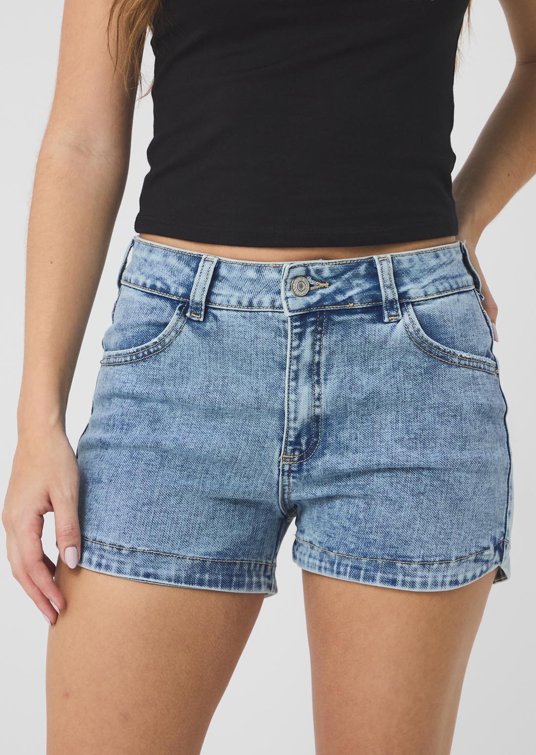 Short tiro alto, lavado claro, en denim y fondo entero para jóvenes.