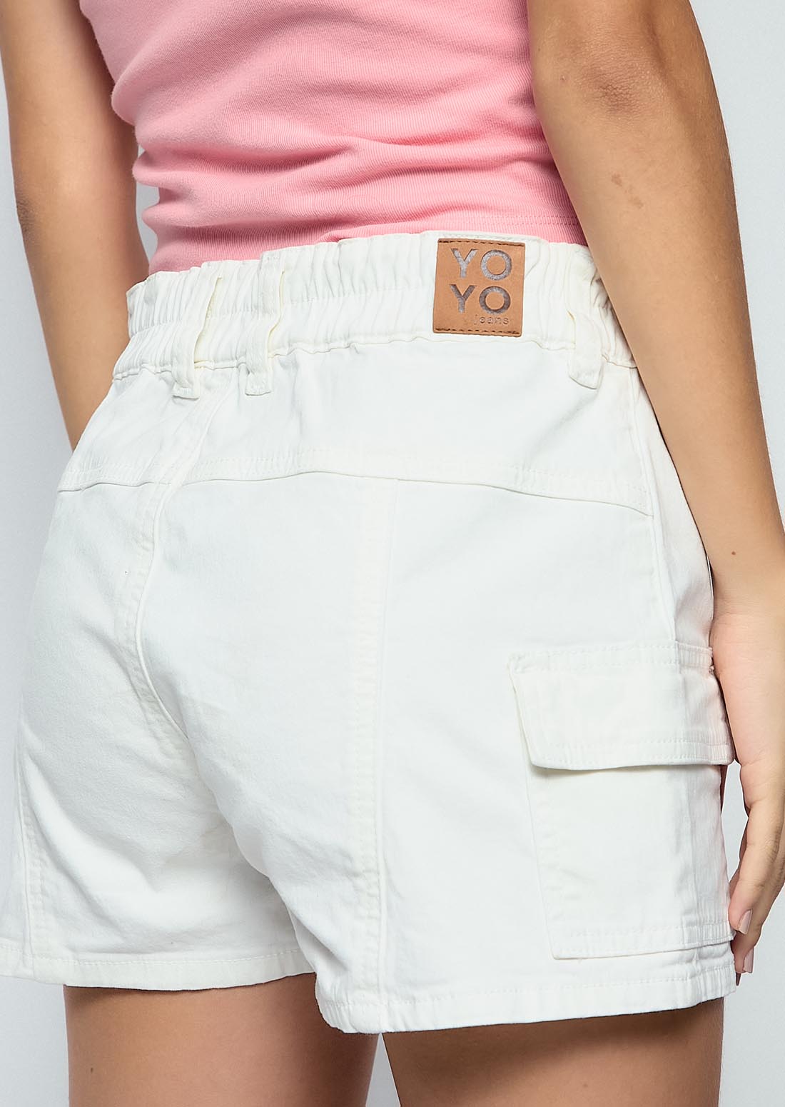 Short tiro alto, color marfil, bolsillos cargo y fondo entero para jóvenes.