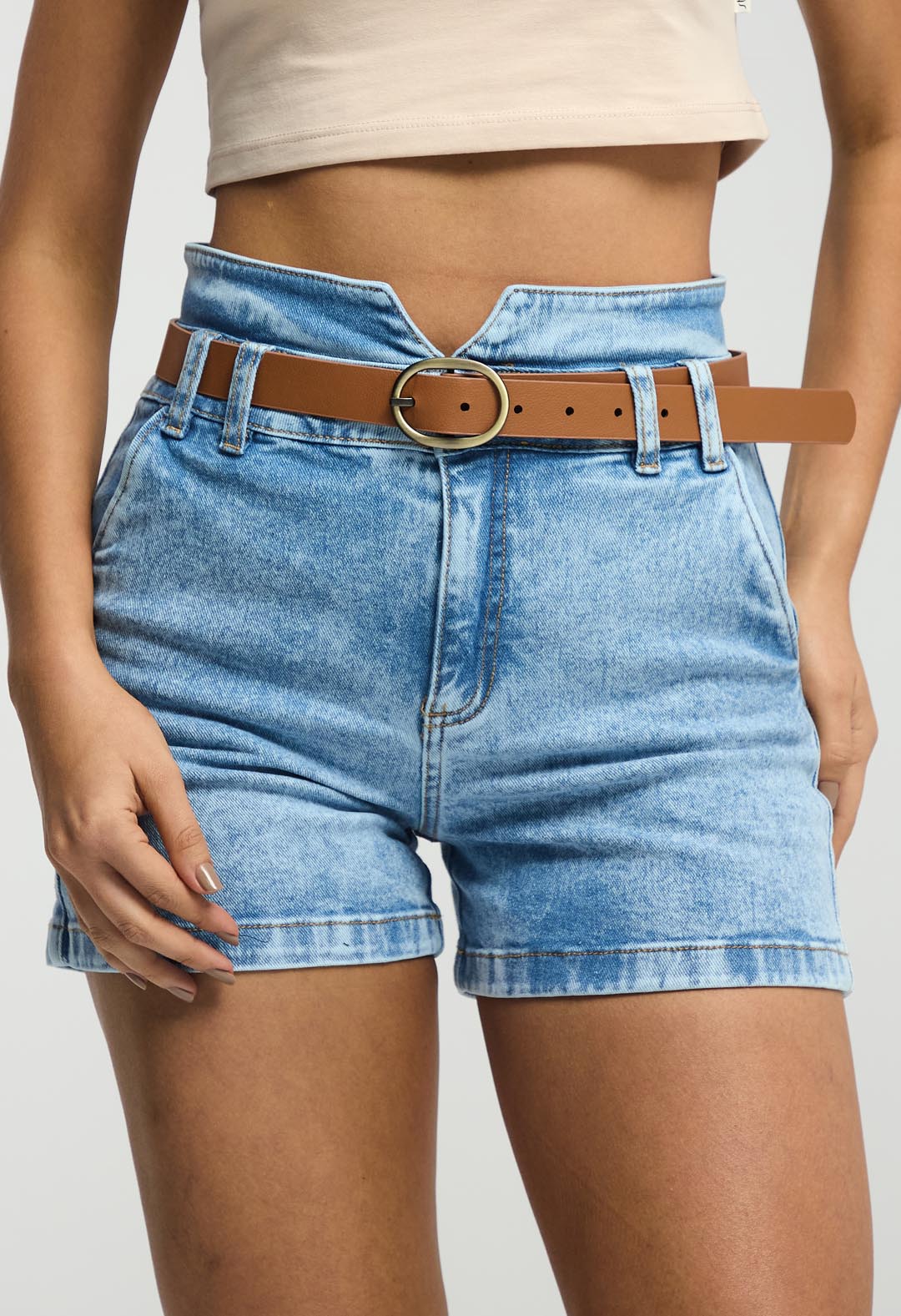 Short tiro alto, lavado medio, fondo entero, bolsillos funcionales y correa incluida para mujeres.
