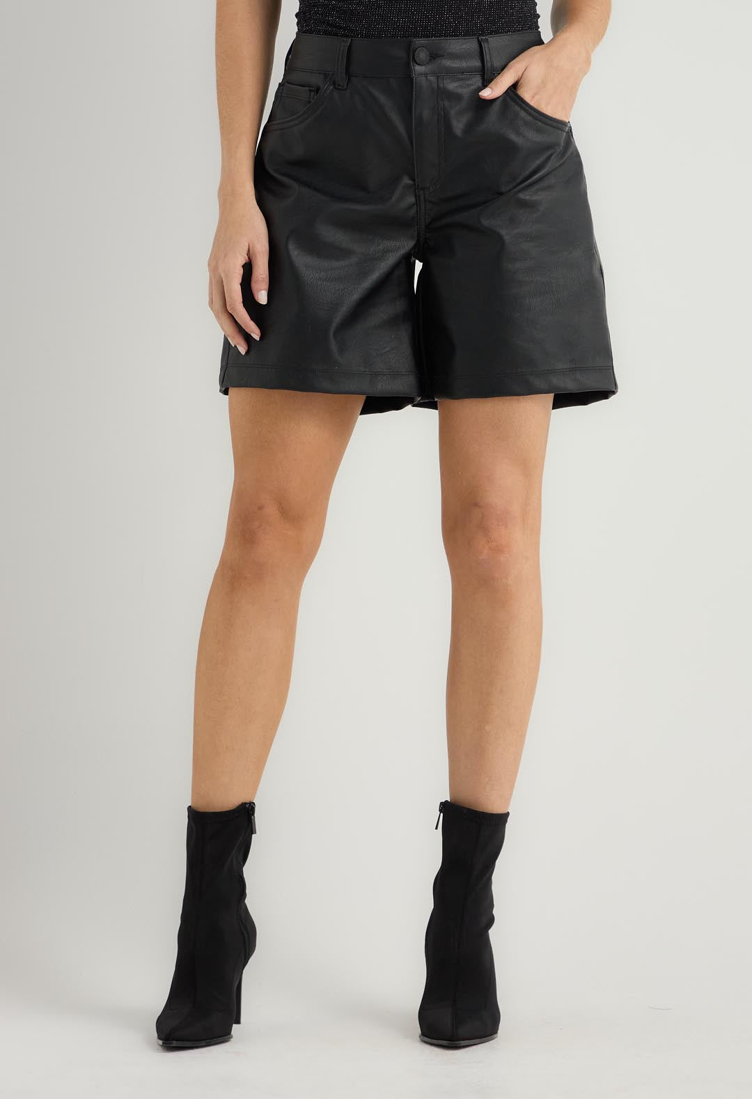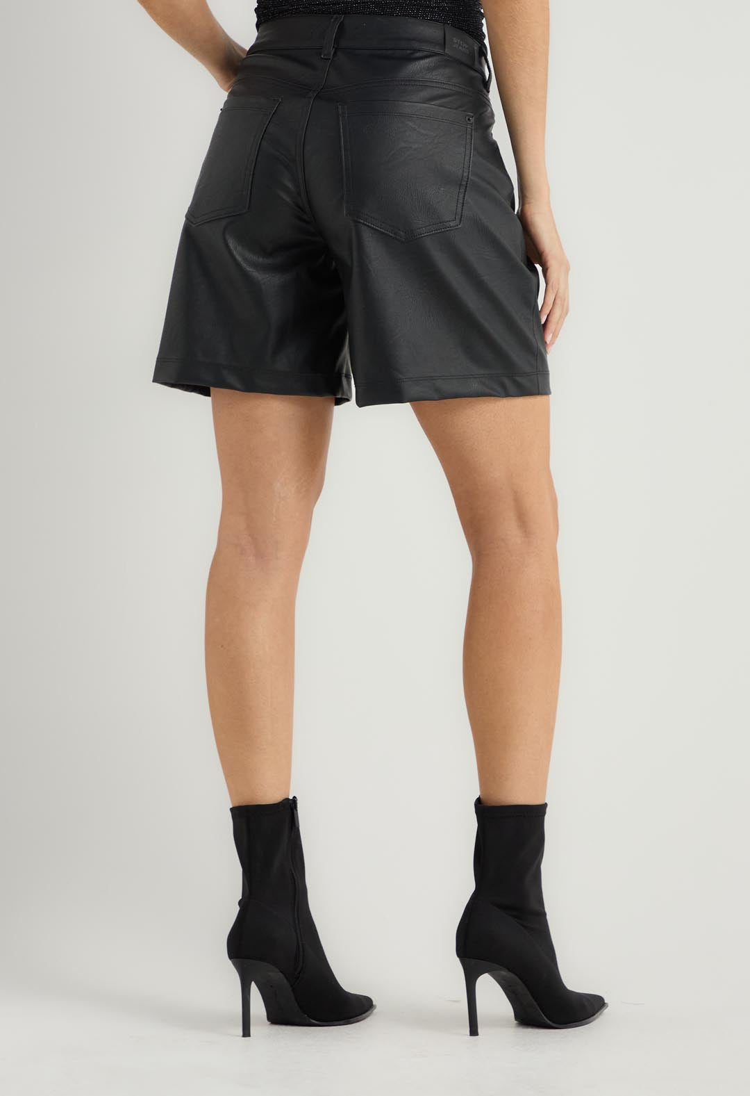 Short tiro alto, color negro, efecto cuero y fondo entero para mujer.