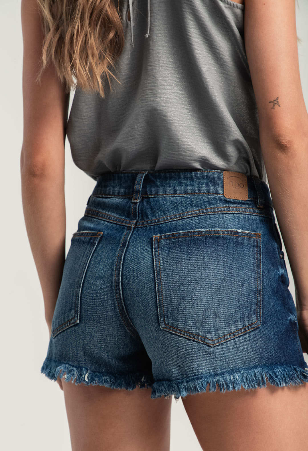 Short tiro alto, lavado oscuro1 y desgastes para mujeres.