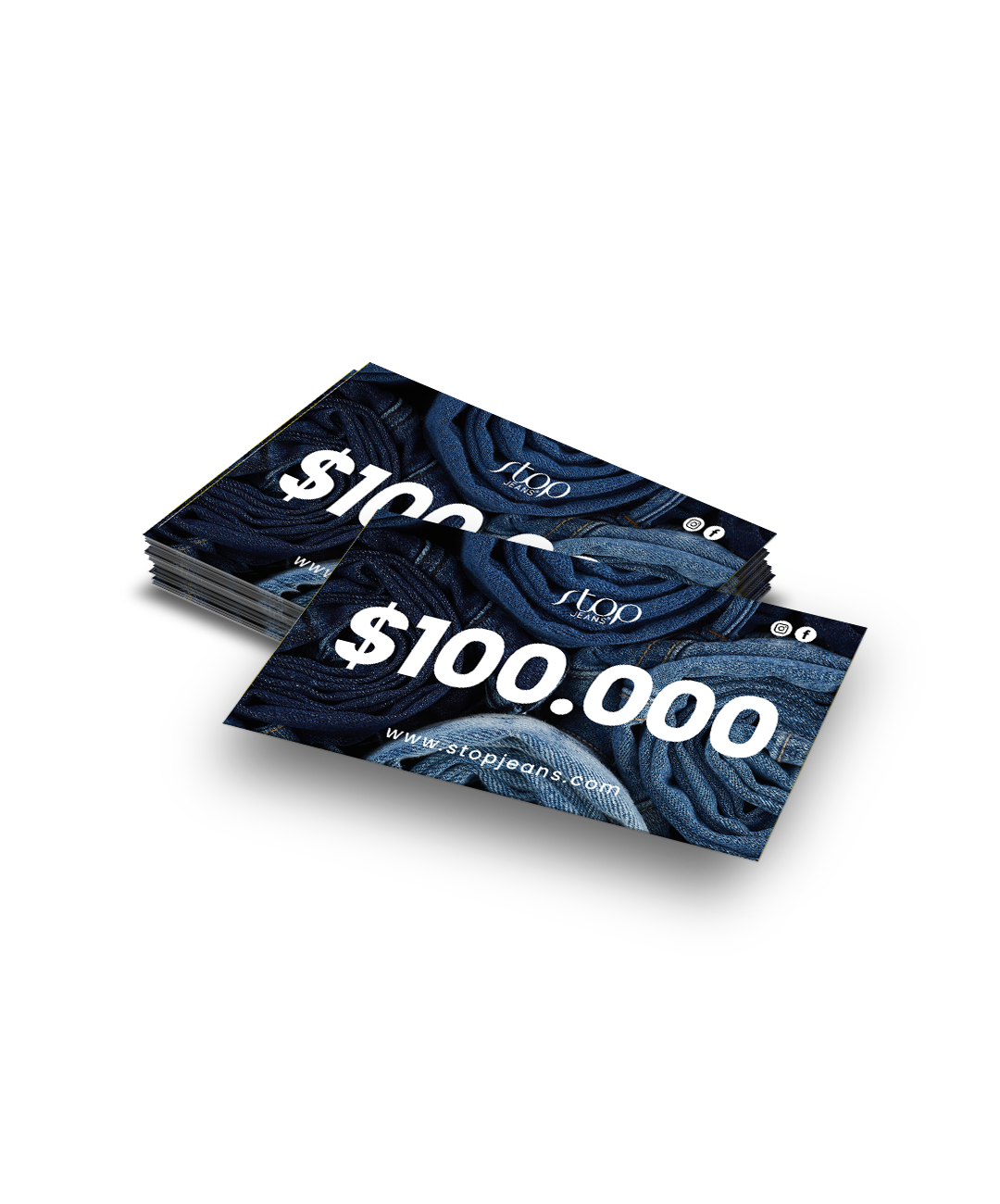 Sorprende y deleita a tus seres queridos con una Tarjeta Regalo de Stop Jeans, la manera más fácil y moderna de regalar estilo y comodidad.