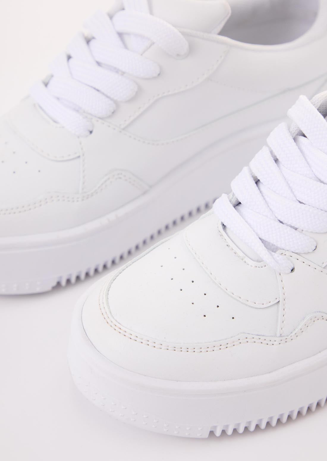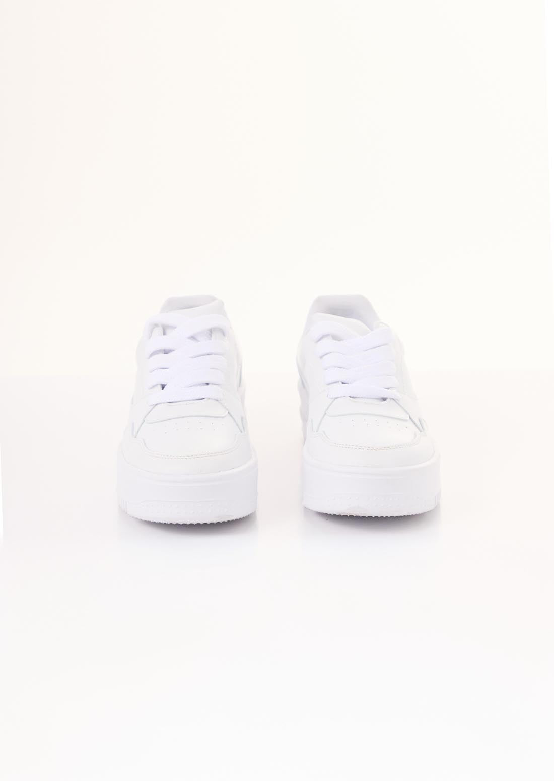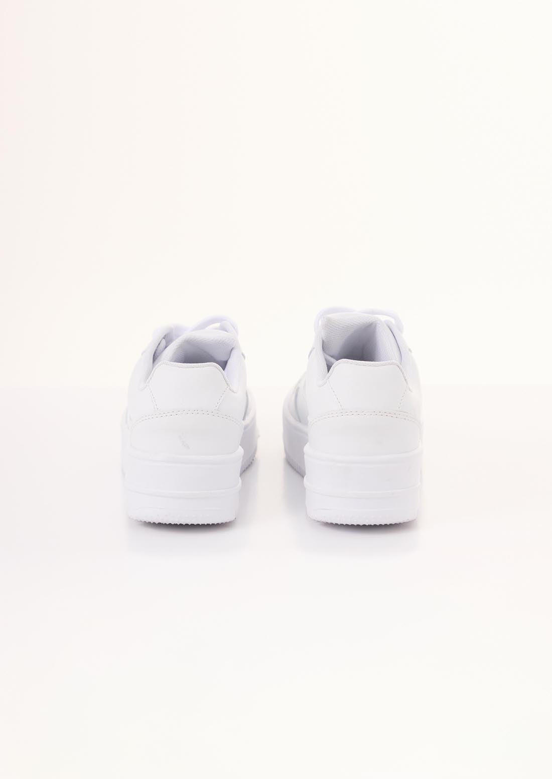 Tenis color blanco con cortes escolares.