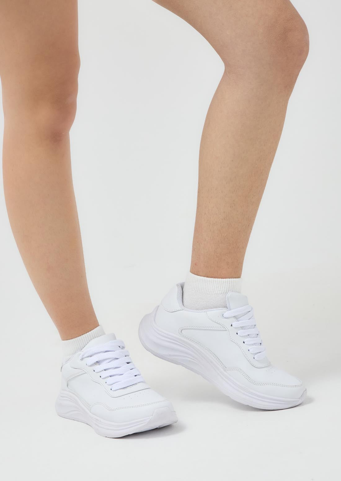 Tenis blancos con líneas escolares