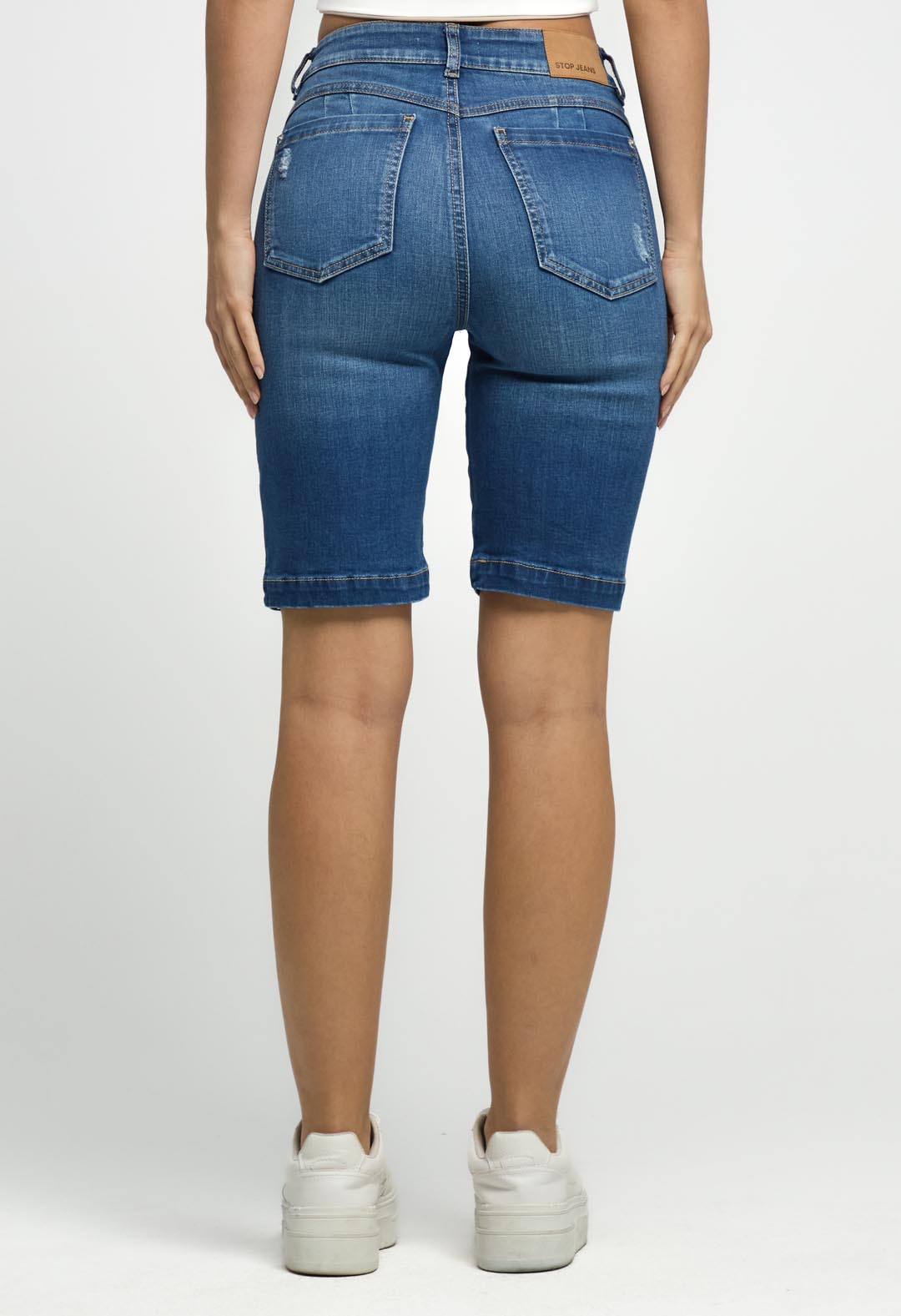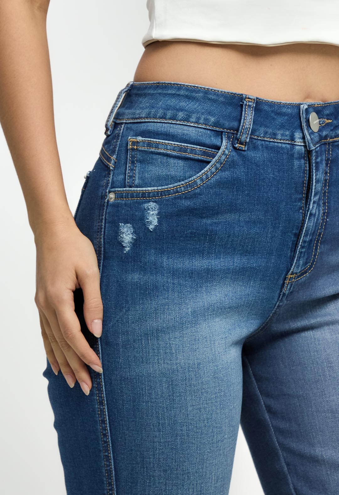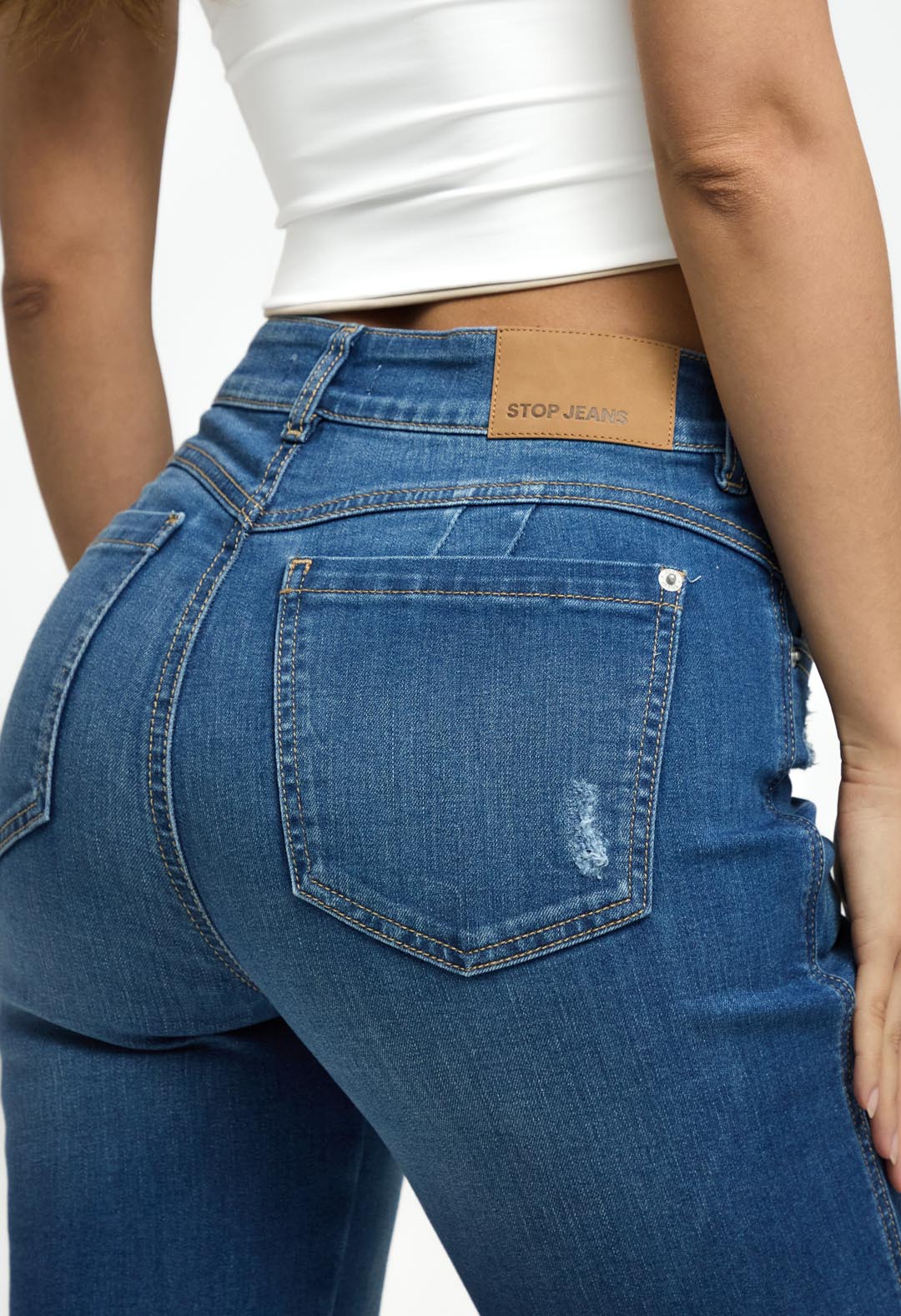Torero, tiro alto, lavado medio, fondo entero y bolsillos funcionales para mujeres.